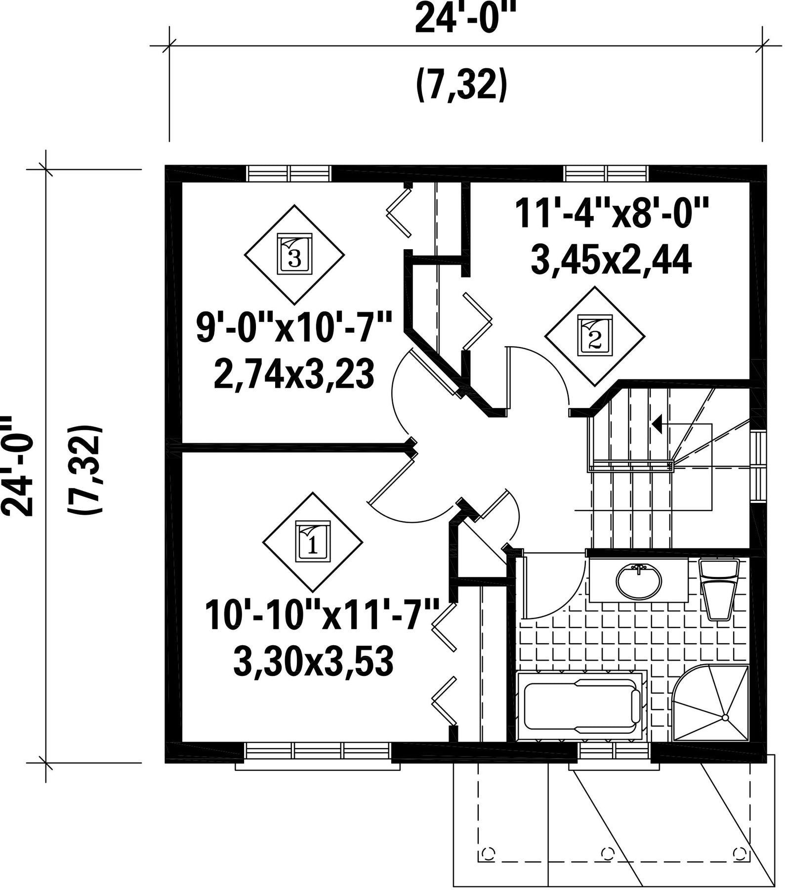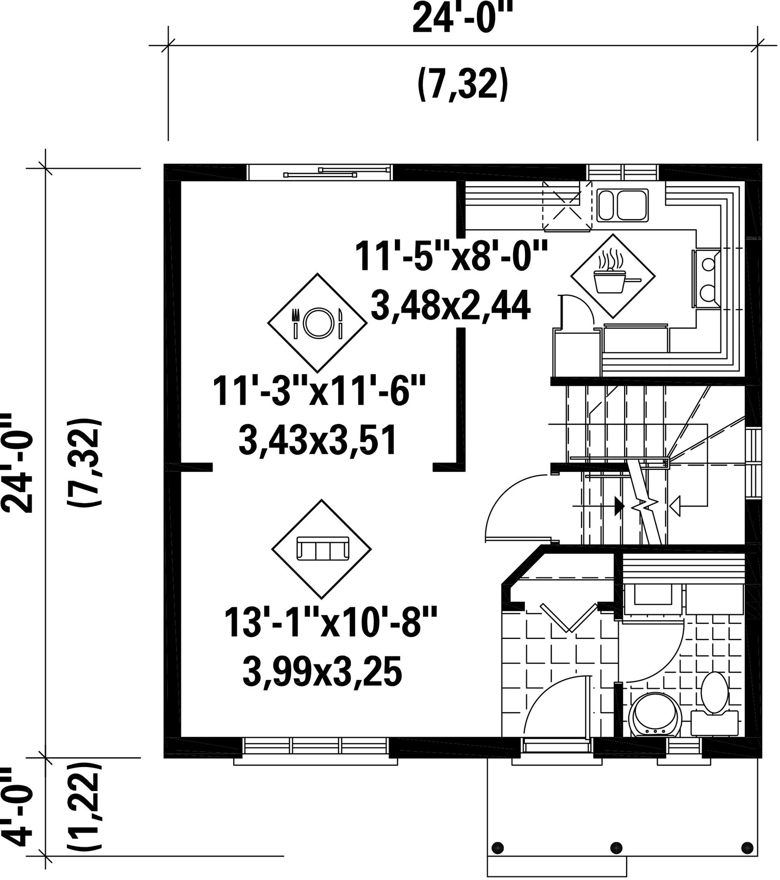 | Façade | 24 pi | Surface habitable totale | 1152 pi² |