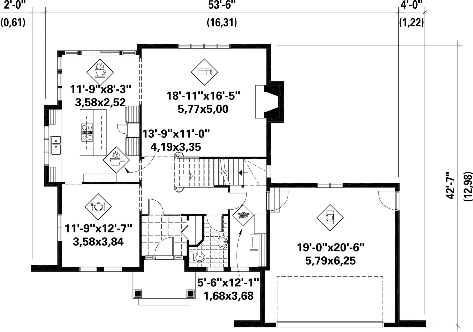 | Façade | 53 pi 6 po |