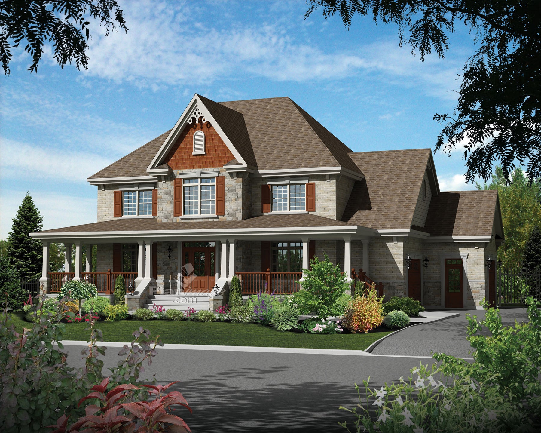 De style champêtre, cette prestigieuse maison à étage a tout pour plaire avec son revêtement de pierres, de briques et de bardeaux de cèdre, sa grande véranda à l'avant, et ses fenêtres agrémentées de volets. Cette demeure mesure 66 pieds de largeur sur 51 pieds de profondeur et offre une surface habitable de 3 066 pieds carrés. Le garage double de 878 pieds carrés dispose d'un accès au sous-sol.