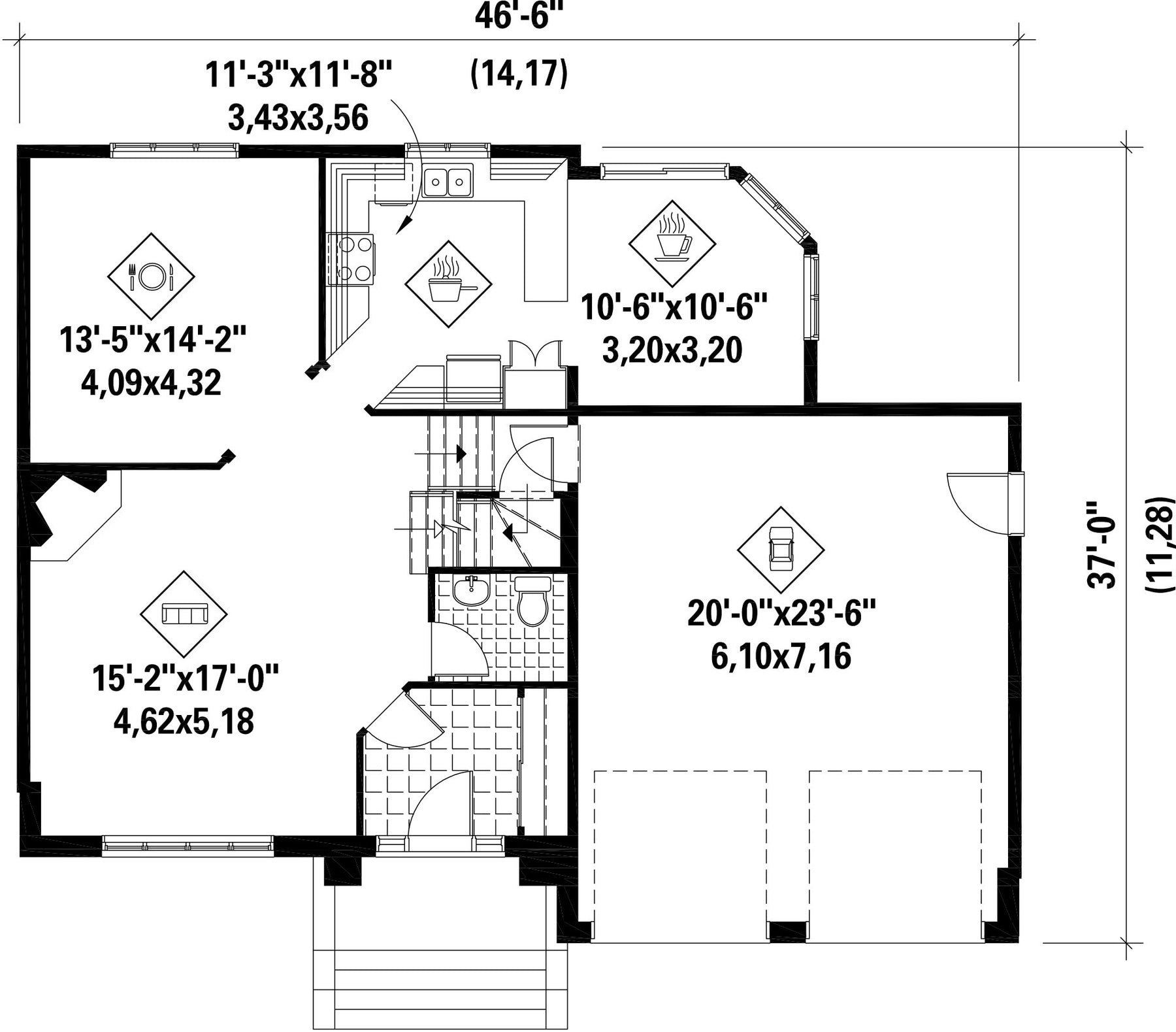 Au rez-de-chaussée, dont la surface habitable s'élève à 979 pieds carrés, on retrouve une cuisine à aire ouverte, un coin-repas entouré de larges fenêtres et comportant un accès vers une salle familiale située au-dessus du garage. Il y a également une salle à manger, un vaste salon, une salle d’eau et un garage double de 511 pieds carrés.