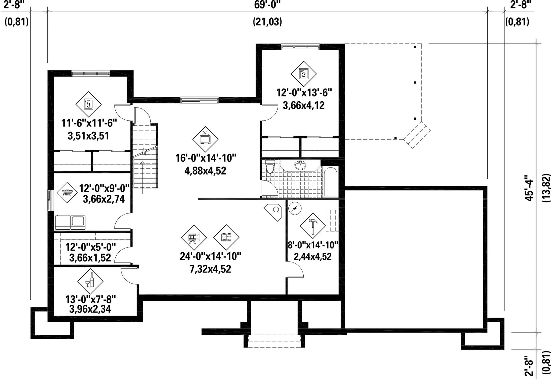 | Profondeur | 45 pi 4 po | Nombre de salles de bain | 2 |