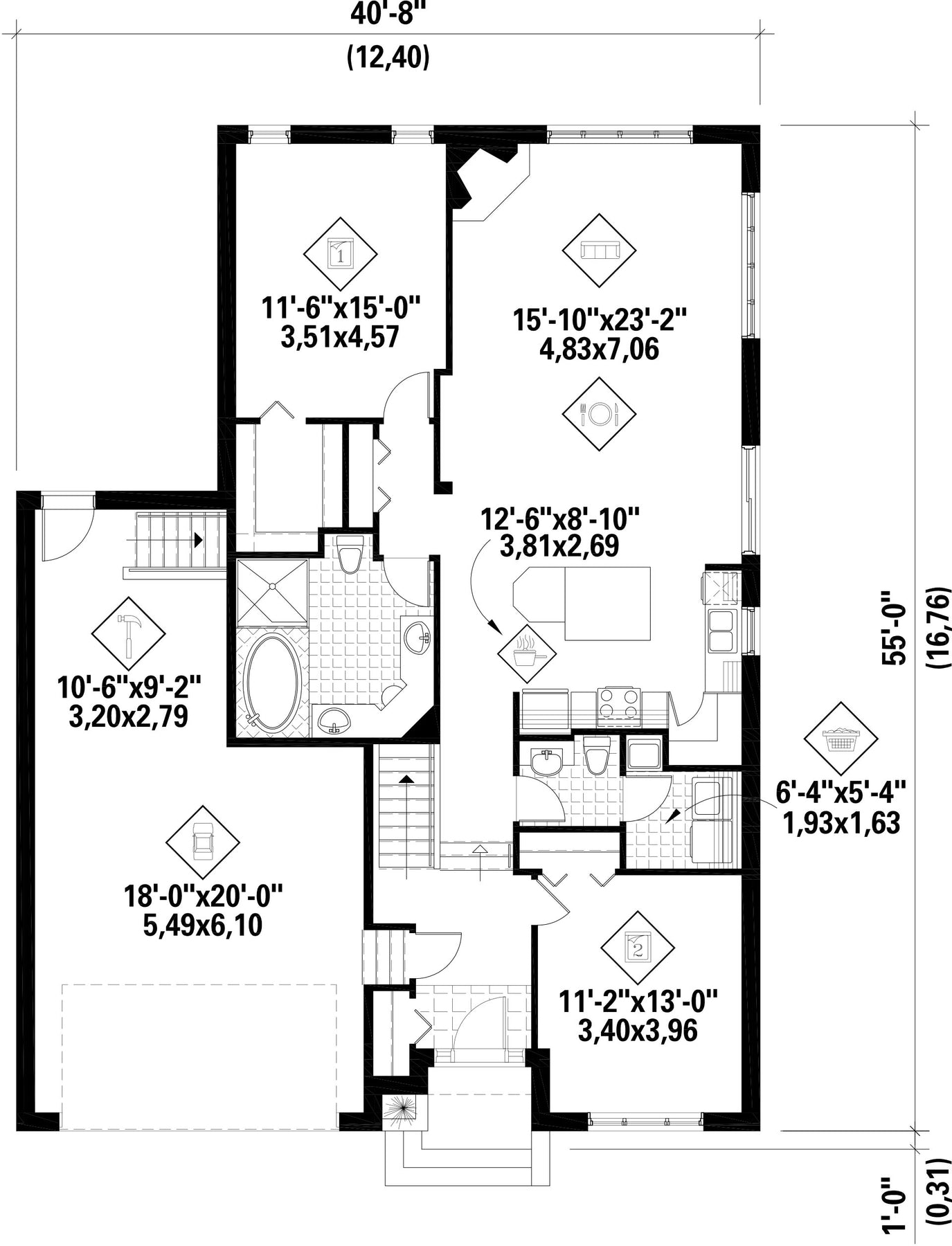 | Façade | 40 pi 8 po |