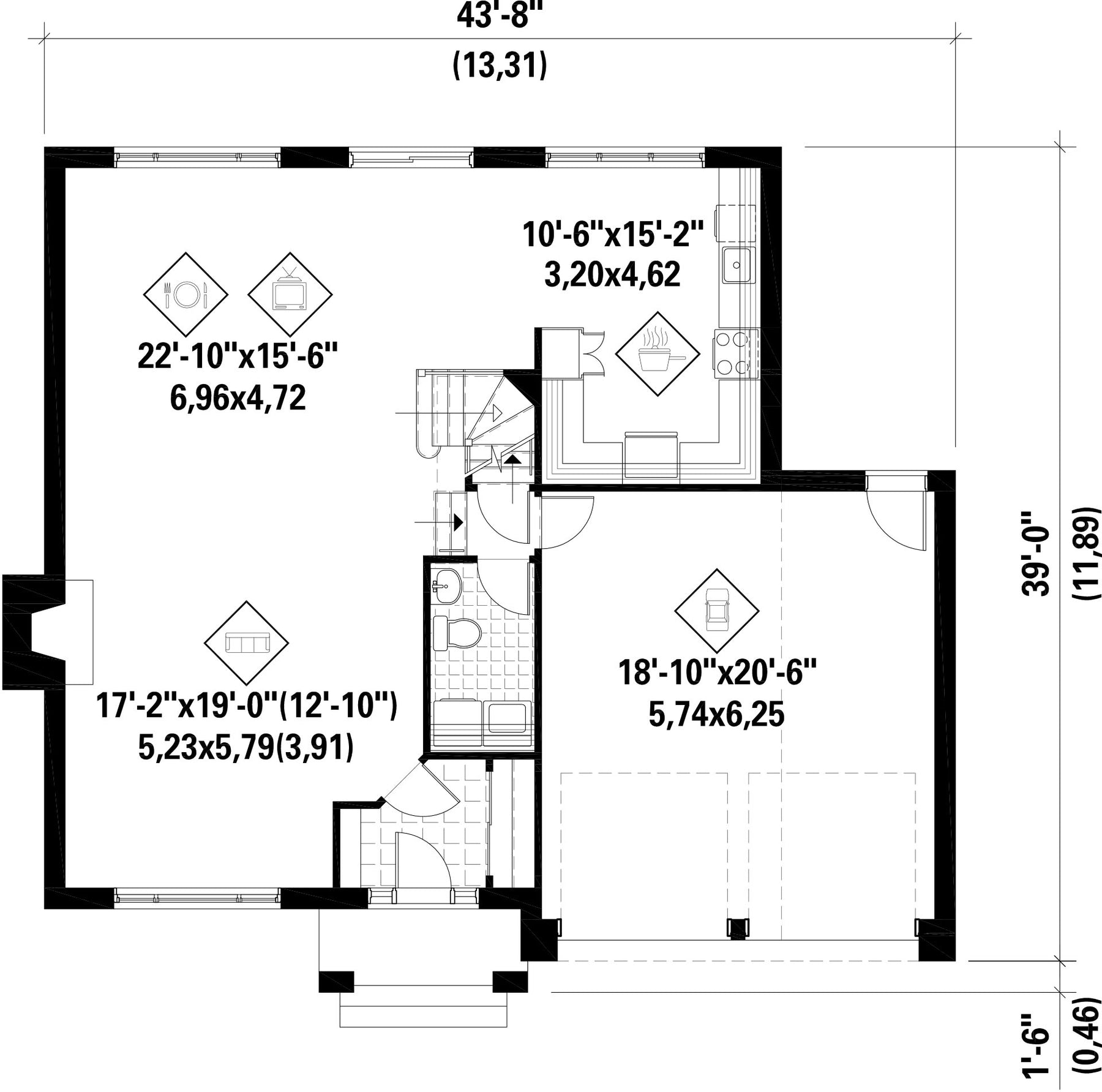 | Façade | 43 pi 8 po |