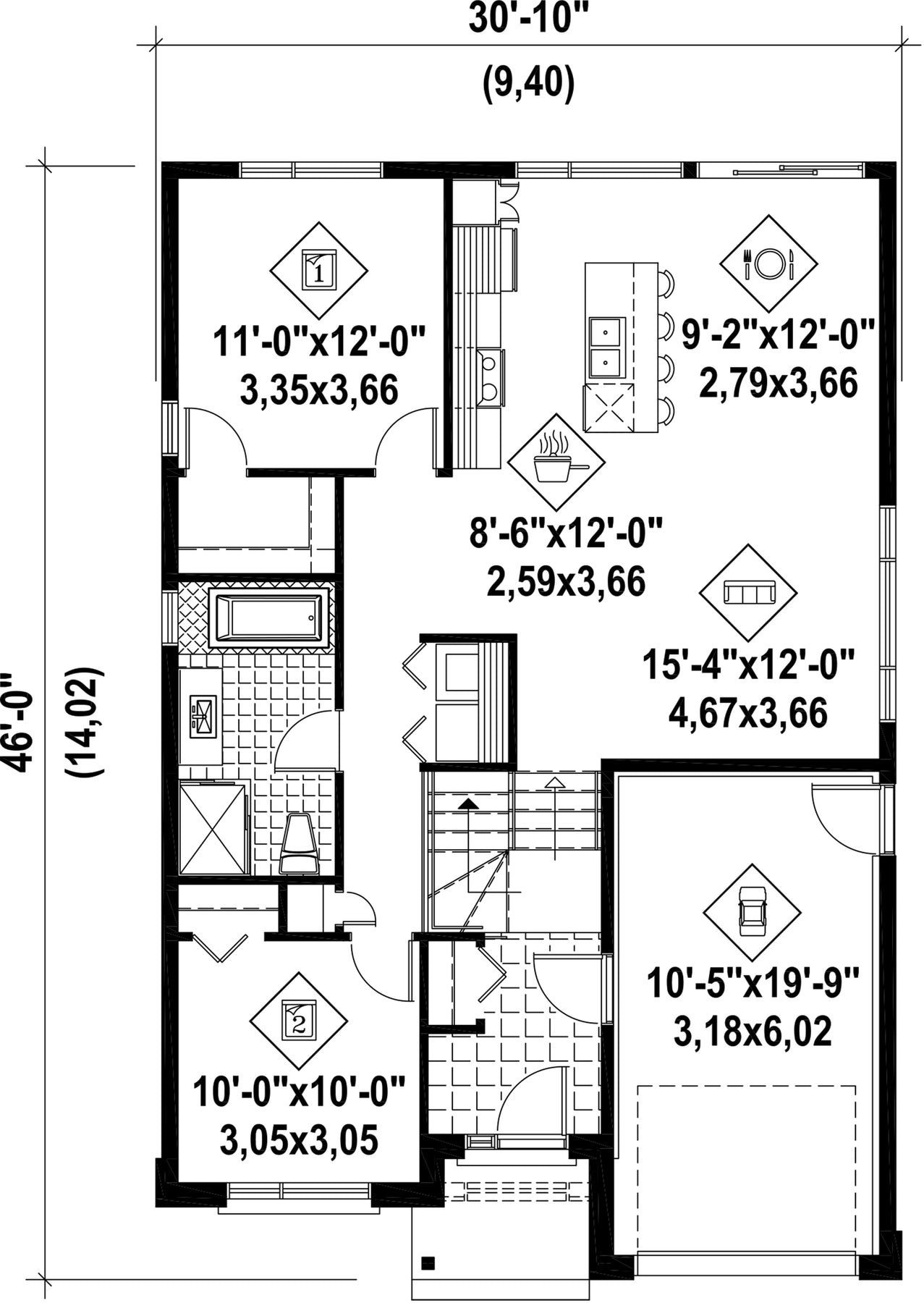 En plus d’un garage simple de 247 pieds carrés, cette charmante maison de plain-pied à la fenestration abondante offre une surface habitable de 1 070 pieds carrés. Elle mesure 30 pieds 10 pouces de largeur sur 46 pieds de profondeur.