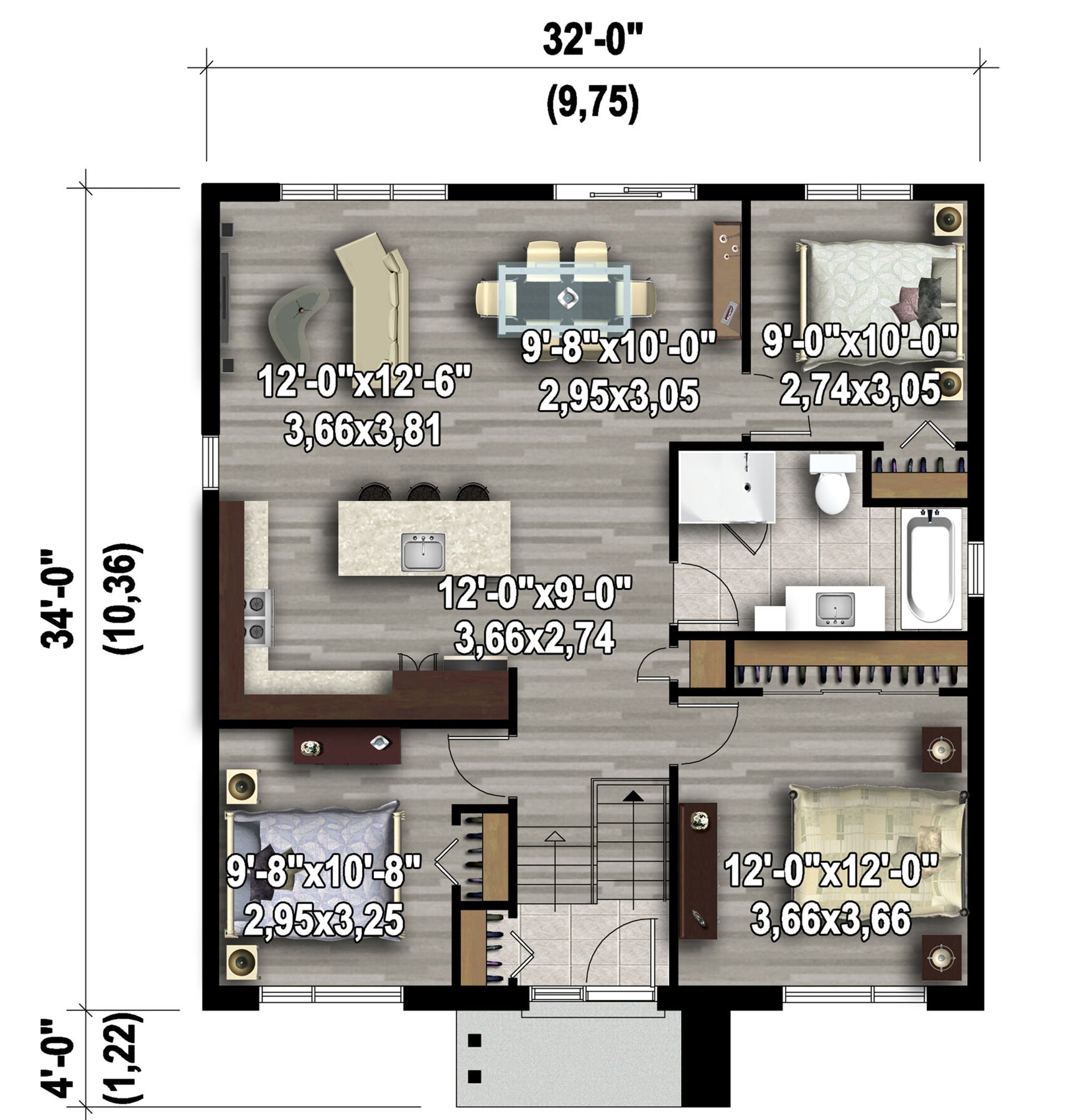 Cette attrayante maison de plain-pied d’allure contemporaine est revêtue d’aluminium, de pierres et de bois. L’aménagement intérieur est bien pensé et conviendra à une famille incluant deux enfants. Elle mesure 32 pieds de largeur sur 34 pieds de profondeur et offre une surface habitable de 1 088 pieds carrés.