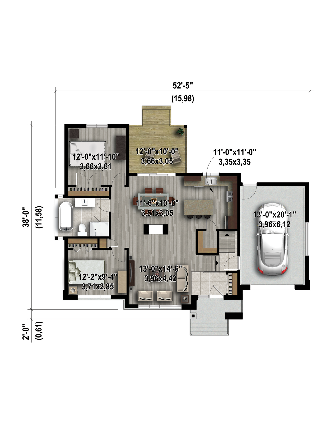 Cette élégante maison de plain-pied de style urbain se distingue par son architecture classique et son extérieur soigné. Elle mesure 52 pieds 5 pouces de largeur sur 38 pieds de profondeur, et sa surface habitable est de 1 116 pieds carrés. Un garage de 308 pieds carrés attenant à la maison peut loger une voiture.