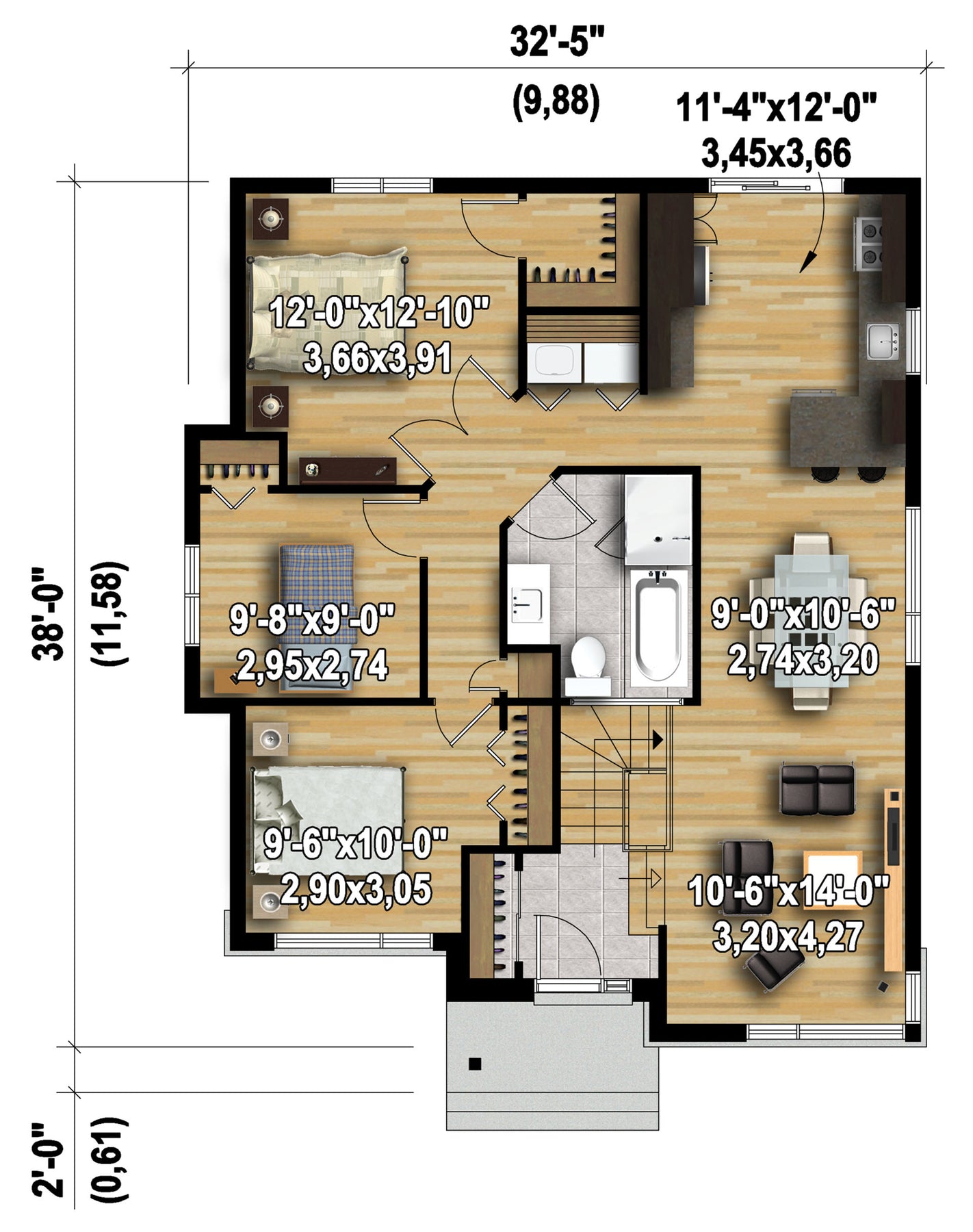 | Profondeur | 38 pi | Nombre de salles de bain | 1 |