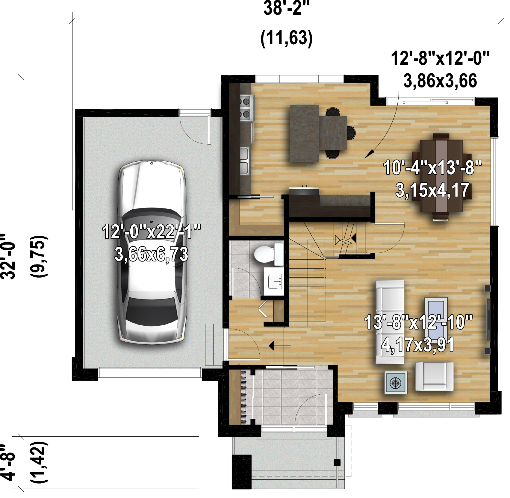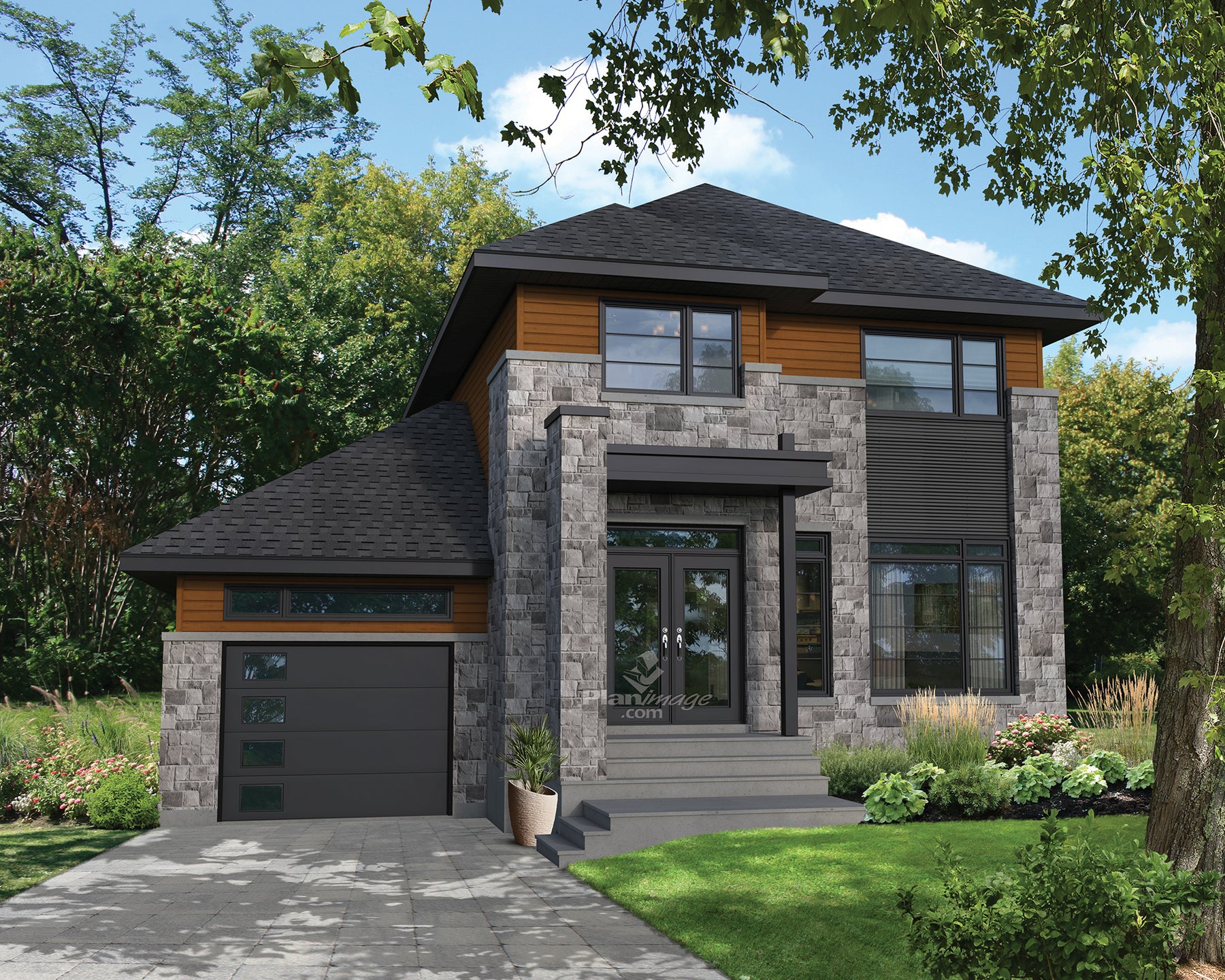 Avec son joli porche, sa fenestration abondante et son revêtement d’aluminium, de pierres et de bois, cette maison à étage a fière allure. Elle mesure 38 pieds 2 pouces de largeur sur 32 pieds de profondeur et possède une surface habitable de 1 468 pieds carrés. Elle dispose également d’un garage de 312 pieds carrés pouvant loger une voiture.