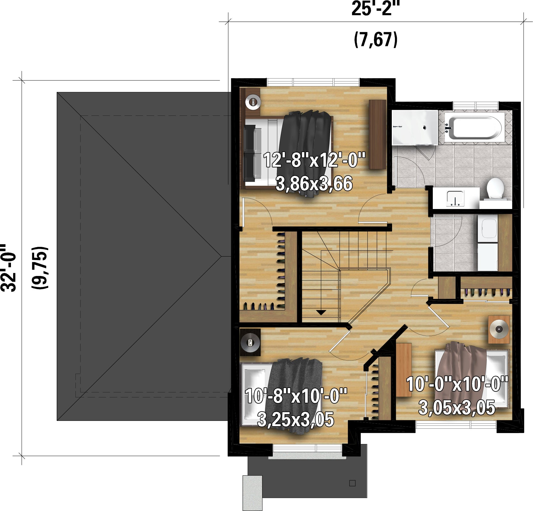 | Mur étage | 8 pi | Inclinaison toit avant/arrière | 8/12 |