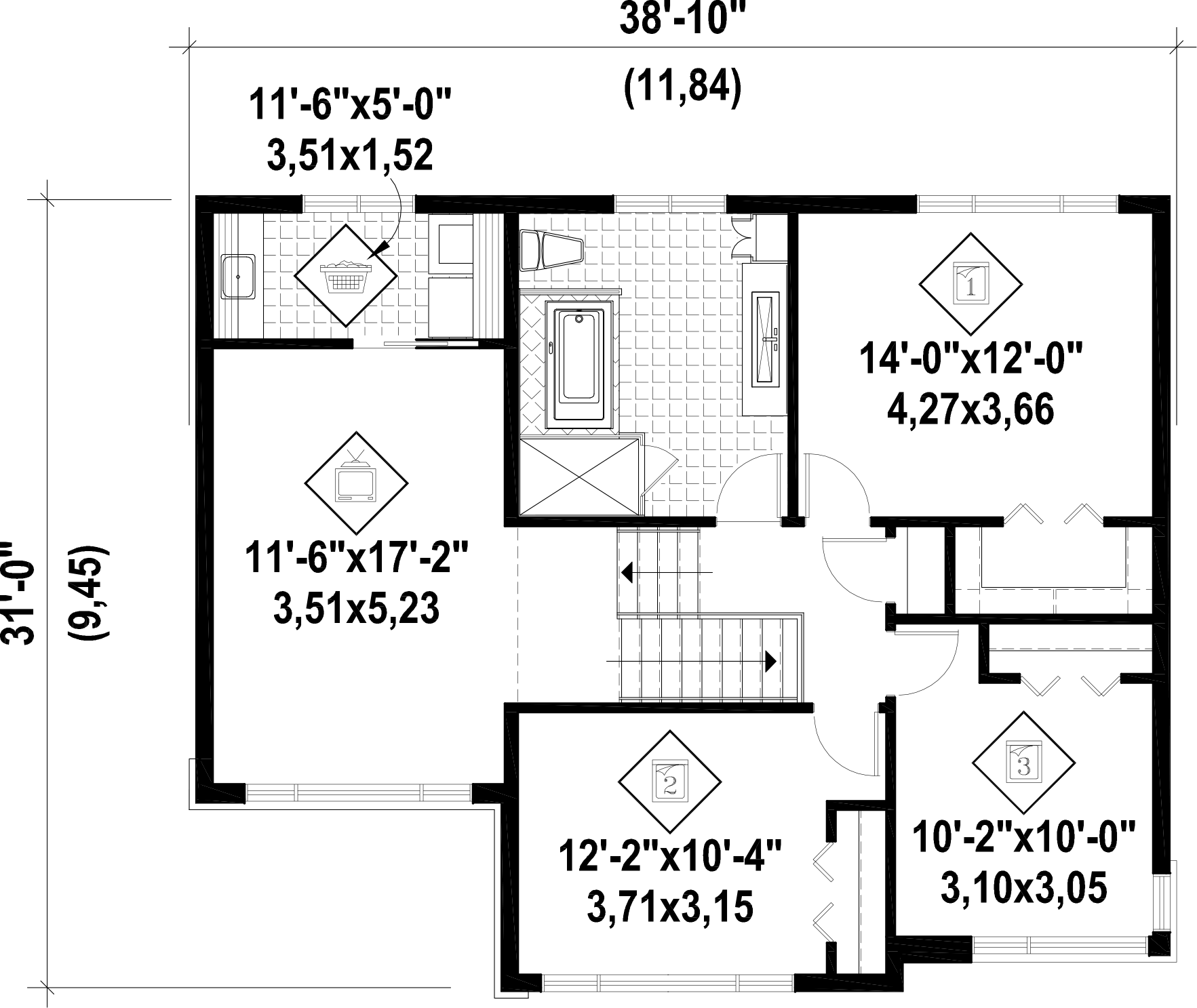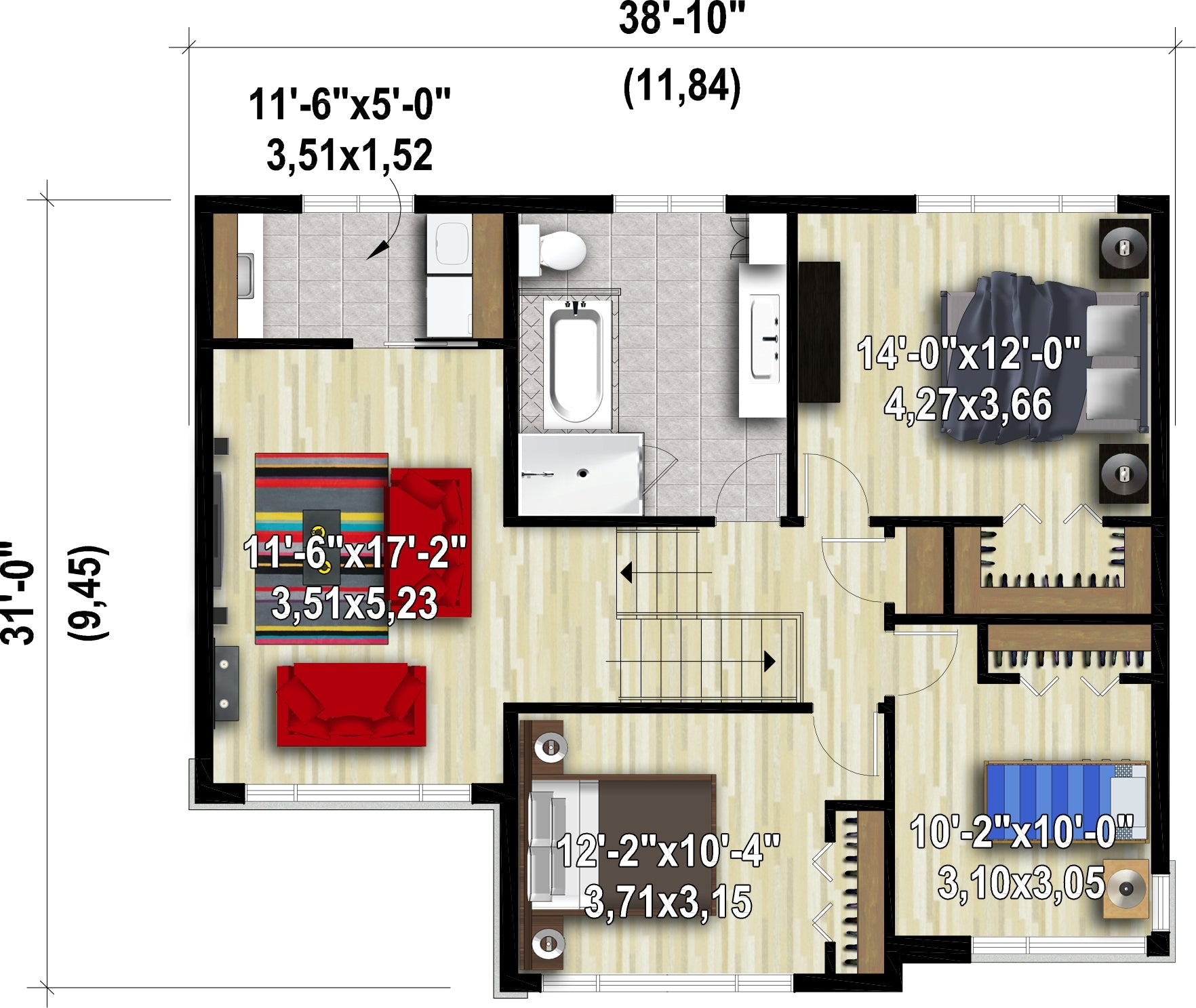 L’étage d’une surface habitable de 1 085 pieds carrés comprend une salle familiale et une salle de lavage situées au-dessus du garage, trois chambres dont une chambre principale avec penderie, ainsi qu’une salle de bains avec une douche séparée et une baignoire sur podium.