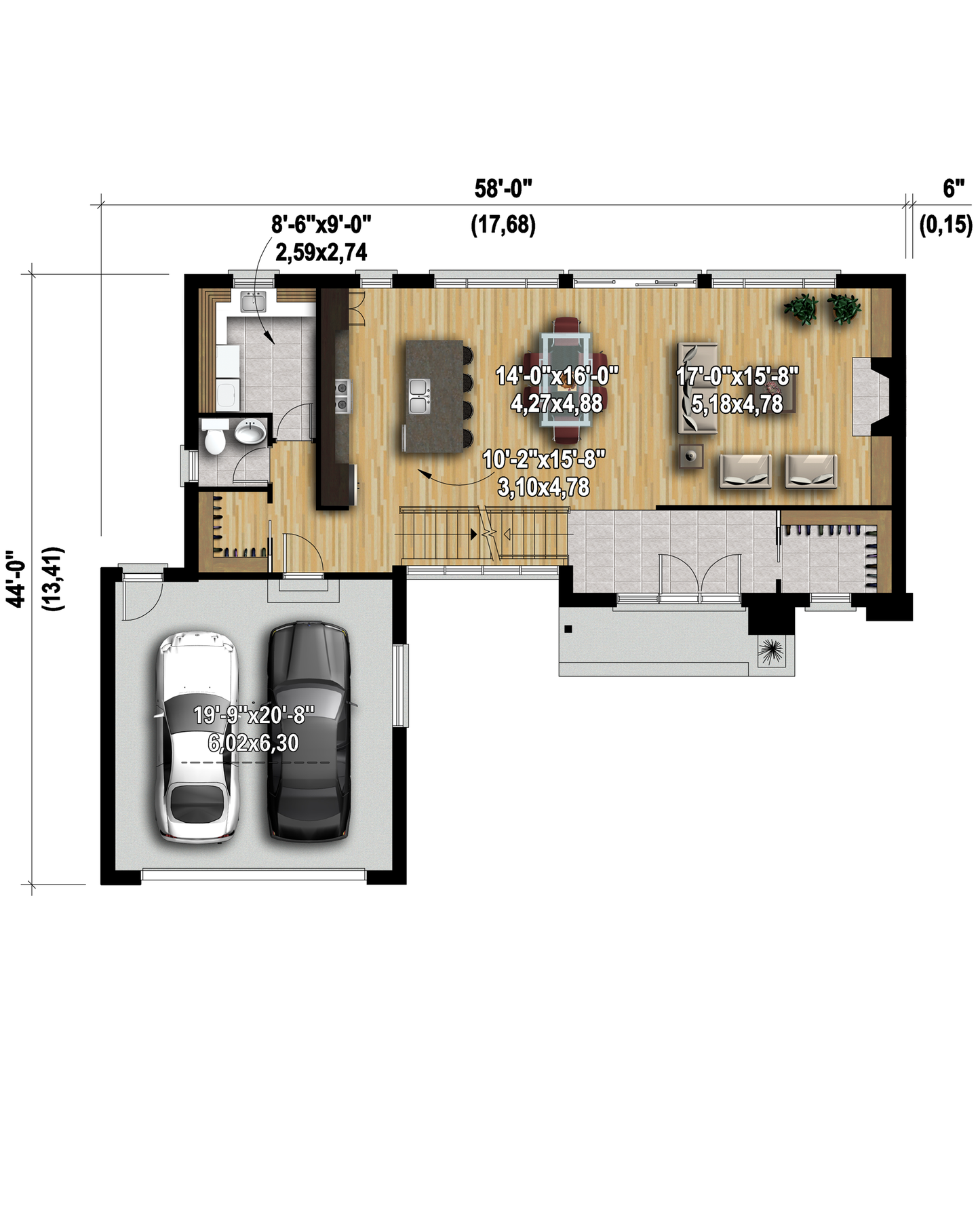 Cette imposante maison à étage à l’architecture contemporaine dispose d’une surface habitable de 2 740 pieds carrés et d’un garage double intégré de 489 pieds carrés. Elle mesure 58 pieds de largeur sur 44 pieds de profondeur et son revêtement extérieur de pierres, d’agrégat et de bois s’harmonise parfaitement à son style unique.