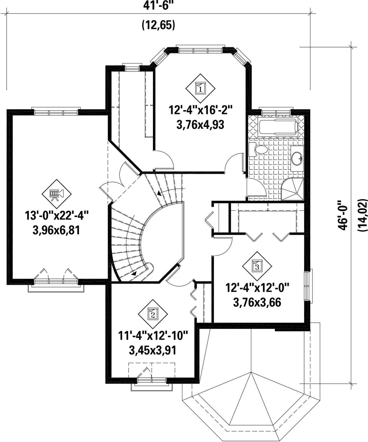 | Hauteur | 38 pi 2 po | Nombre de chambres | 3 |