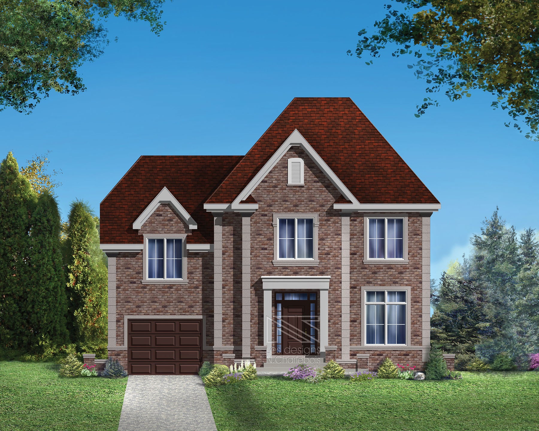 Cette superbe maison à étage se veut moderne et élégante grâce à un revêtement de briques et d'aluminium posé à l’horizontale et à des coins français. Elle mesure 40 pieds de largeur sur 34 pieds 6 pouces de profondeur et offre une surface habitable de 2 028 pieds carrés.