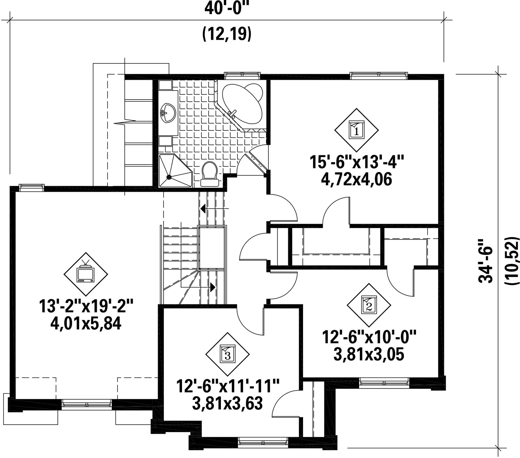 | Hauteur | 34 pi 7 po | Nombre de chambres | 3 |