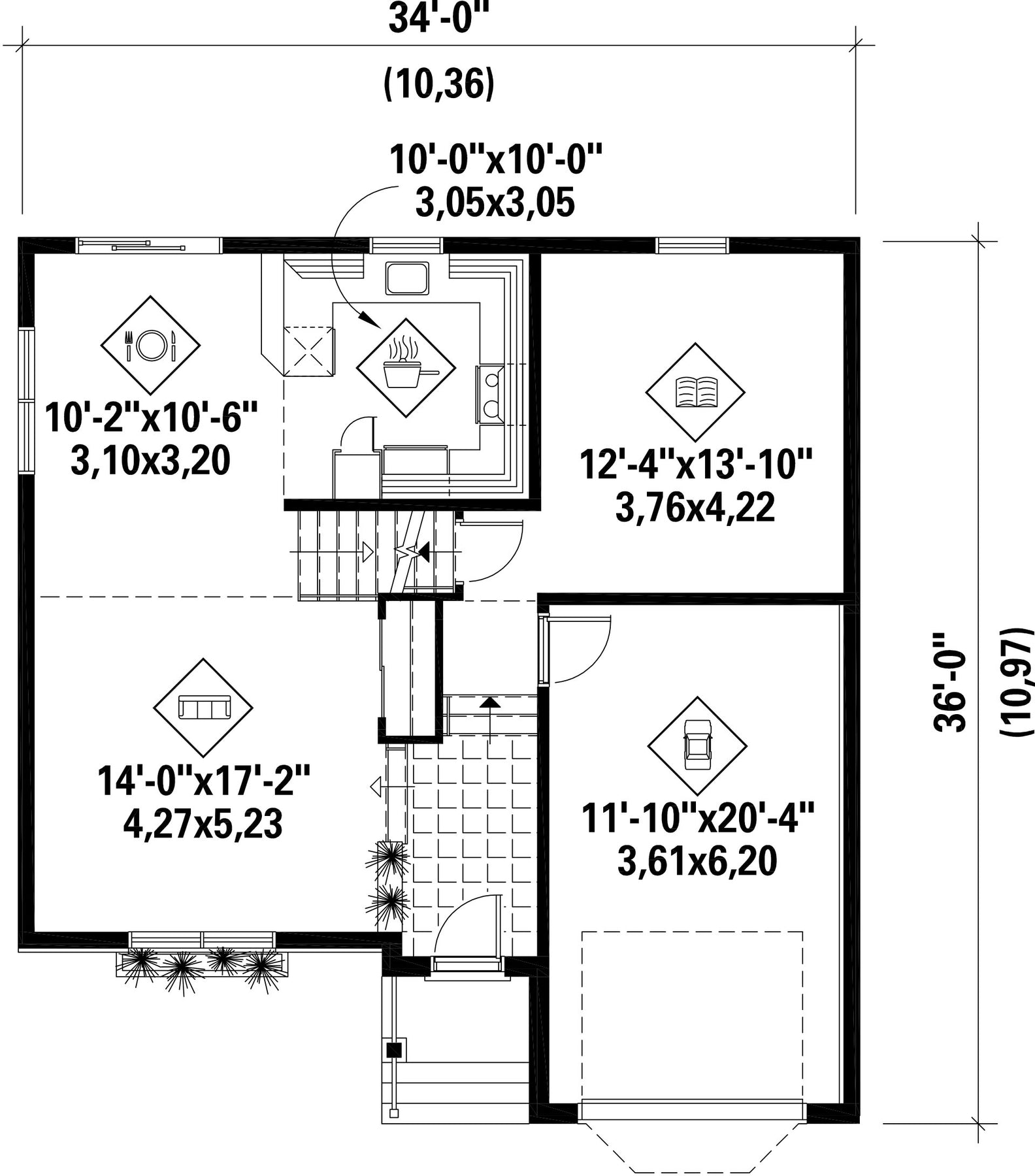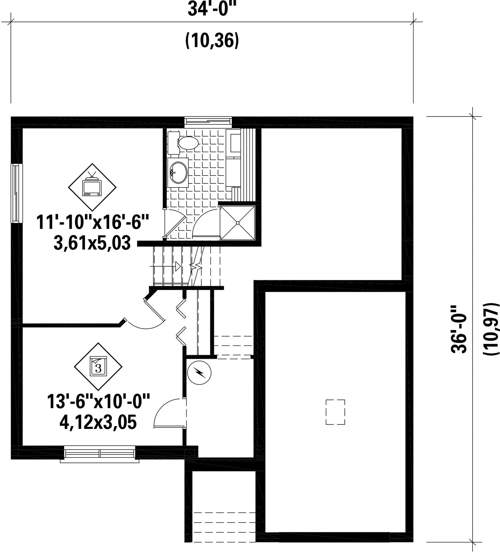 Inclinaison toit gauche/droite 14/12Surface sous-sol 816 pi²