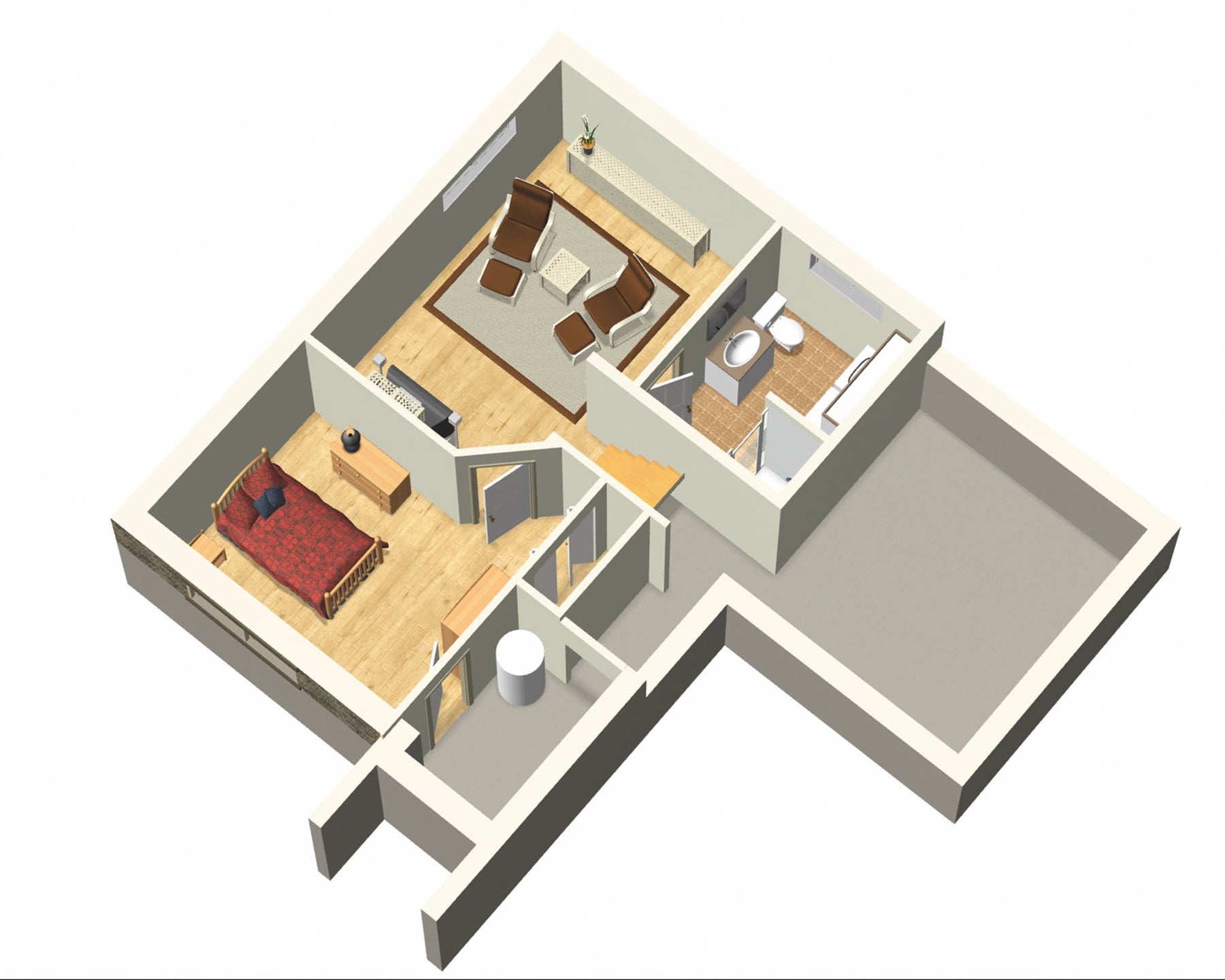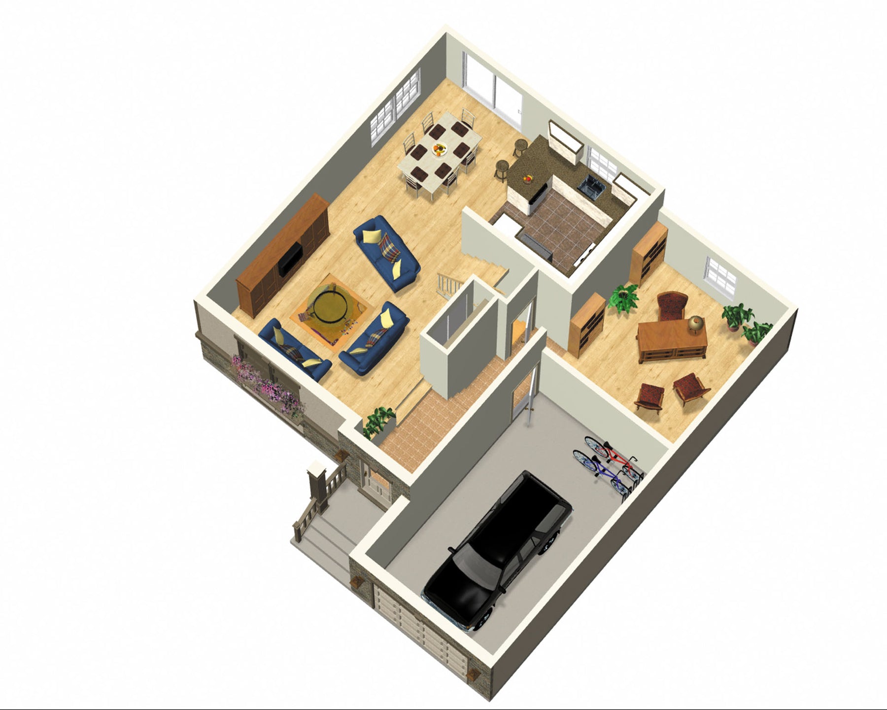 "Maison à aire ouverte Sous-sol aménagé Salle de lecture au niveau du sol"