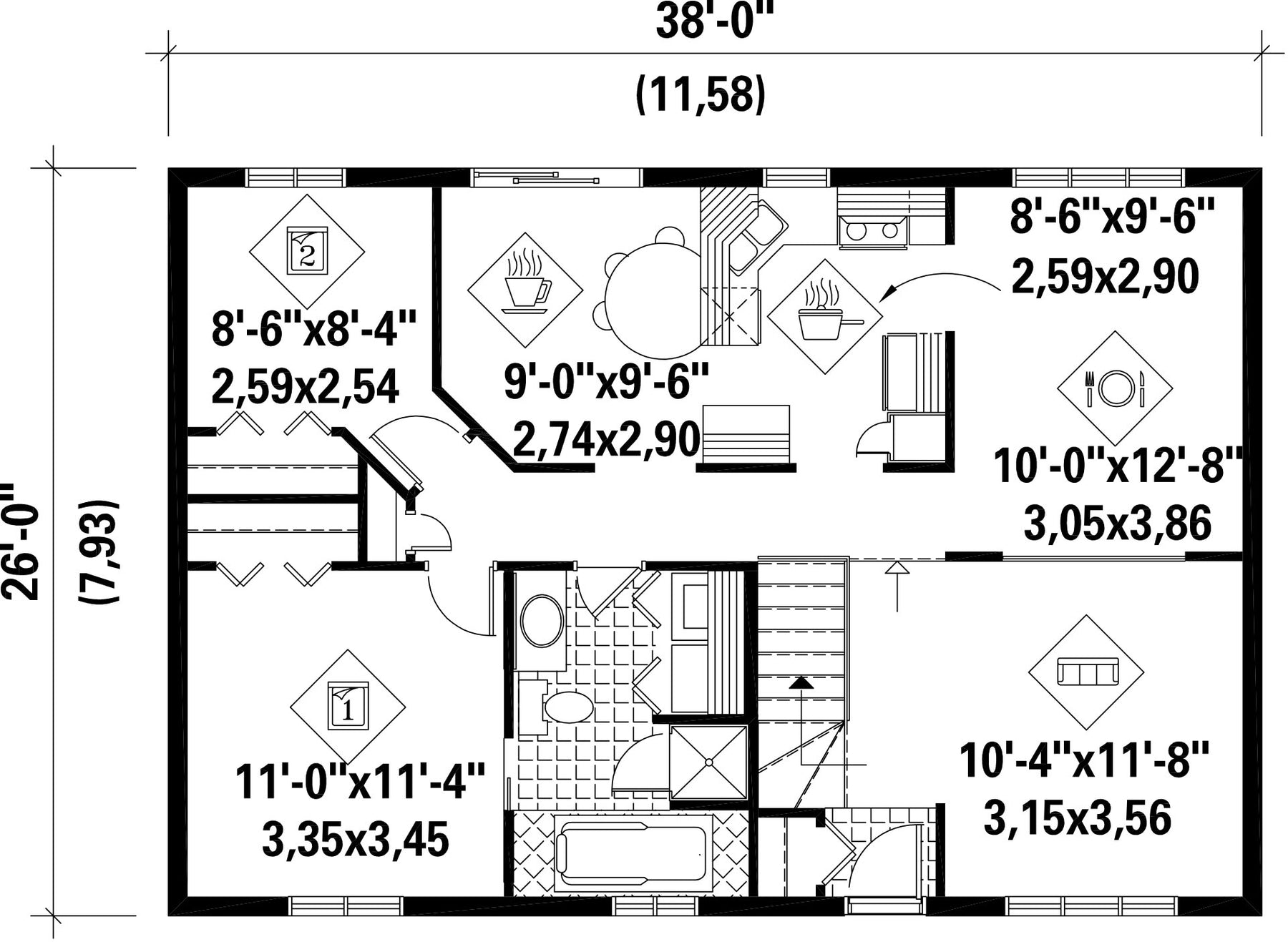Façade 38 pi Surface habitable totale 988 pi²