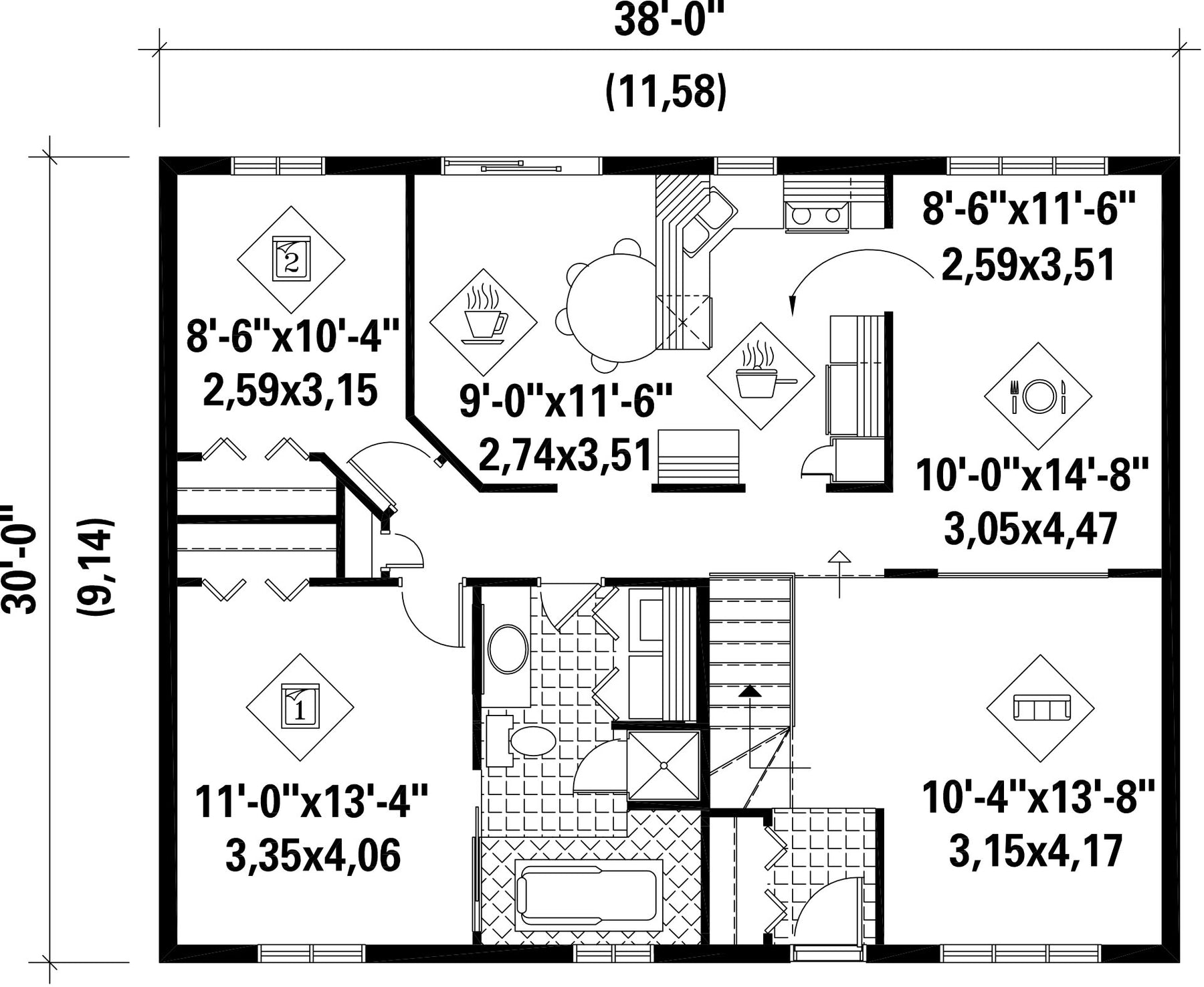 Façade 38 pi Surface habitable totale 1140 pi²