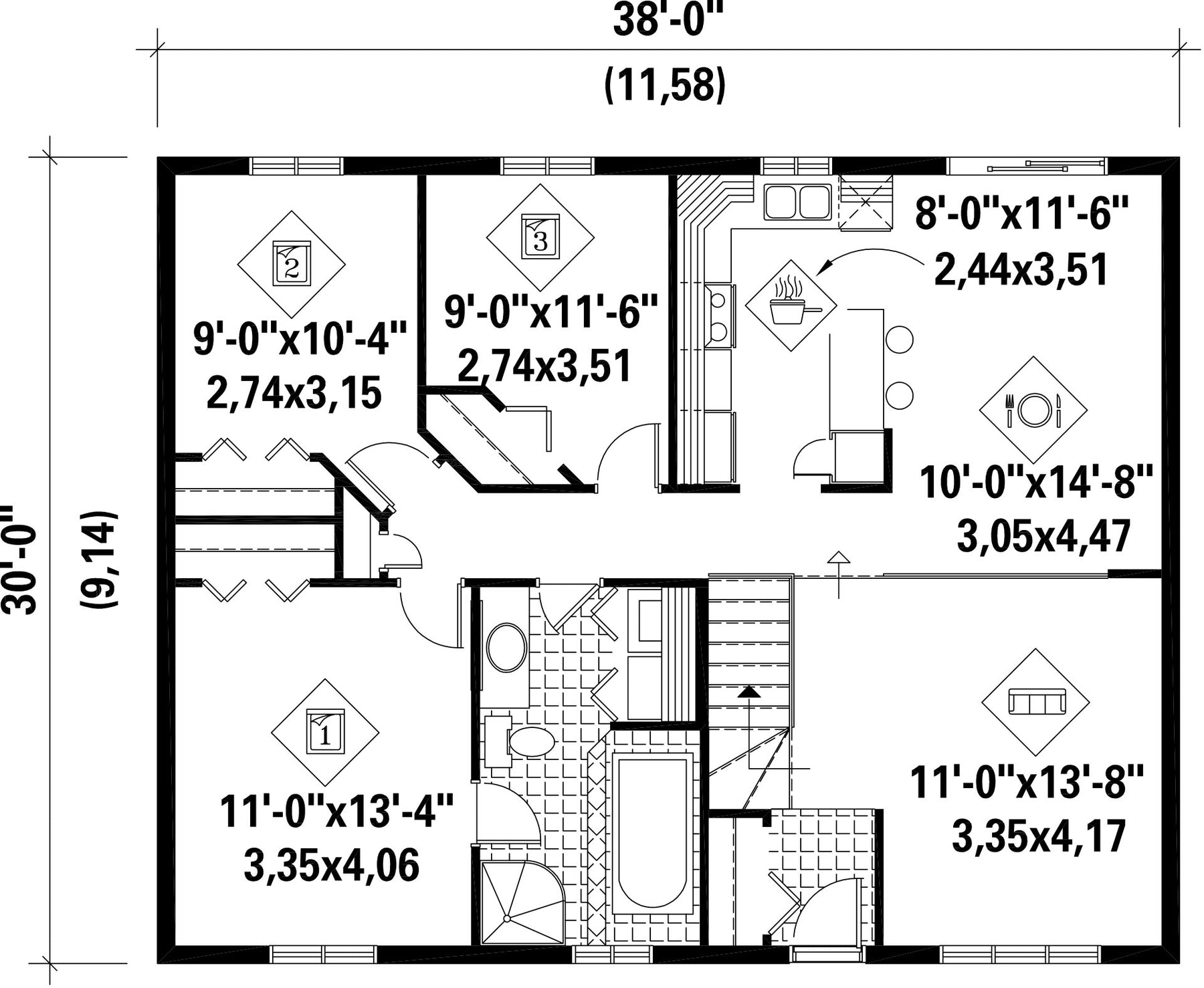 Hauteur 19 pi 3 poNombre de chambres 3