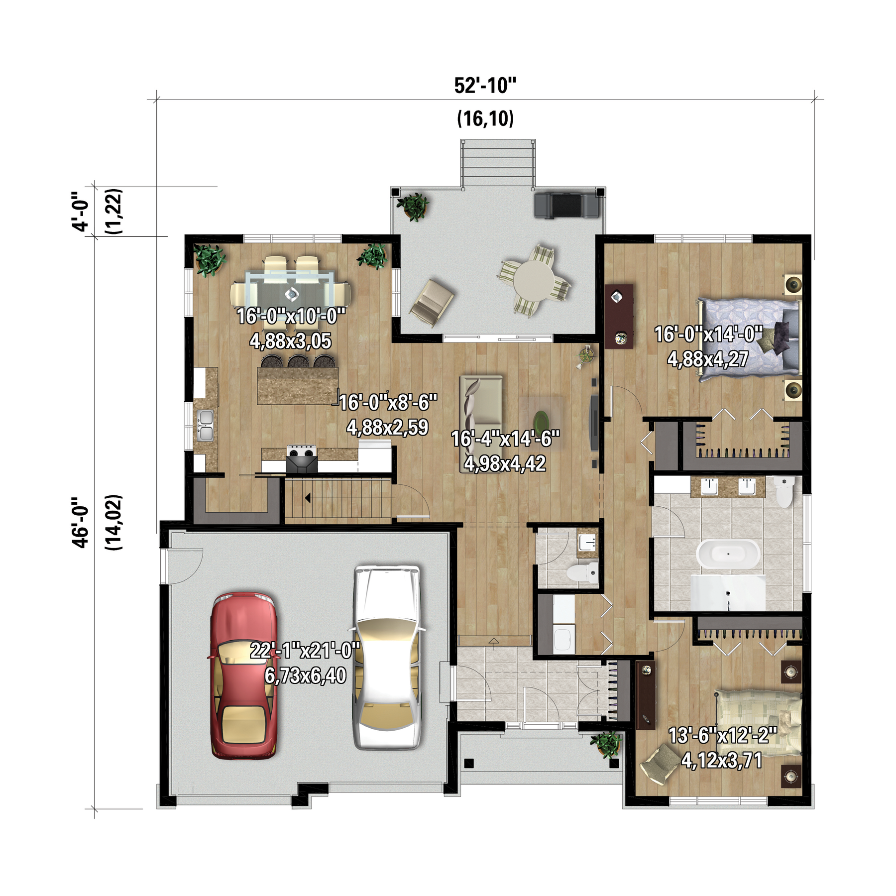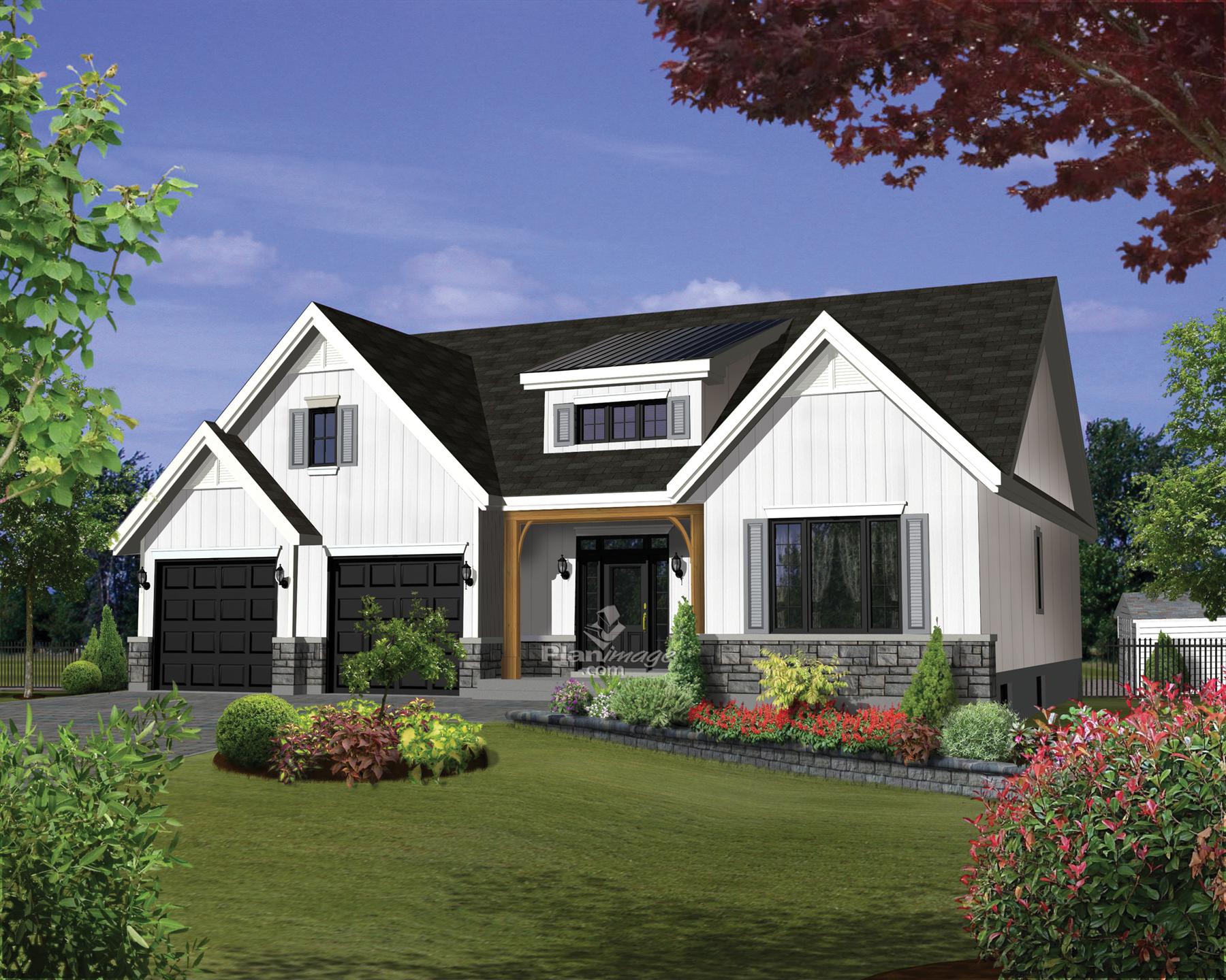 Avec son revêtement en bois blanc, ses volets de couleur et ses colonnes en bois naturel, cette maison de plein-pied de style Farmhouse se démarque. La demeure mesure 52 pieds 10 pouces de largeur sur 46 pieds de profondeur pour une superficie habitable de 1 618 pieds carrés.