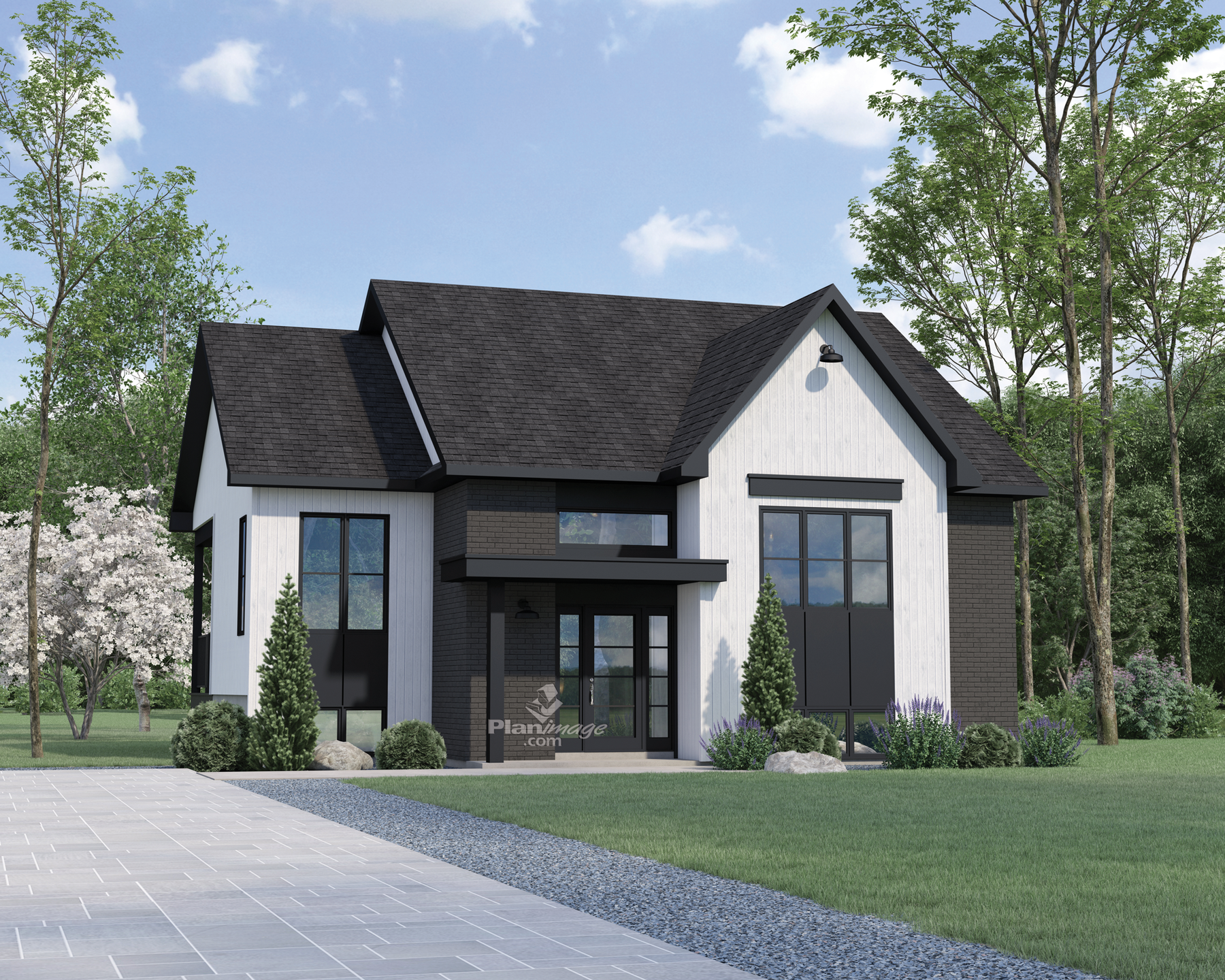 Une élégante maison aux allures Farmhouse avec une belle fenestration. Le vestibule d’entrée donne sur l’aire ouverte du salon, de la salle à dîner et de la cuisine où se trouve un garde-manger walk-in. Deux chambres à coucher dont la principale avec une garde-robe walk-in. Une salle de bain complète avec bain et douche séparés et une grande vanité ainsi qu’une armoire. Un espace laveuse-sécheuse est adjacent à la salle de bain. La superficie habitable est de 1 186 pi².