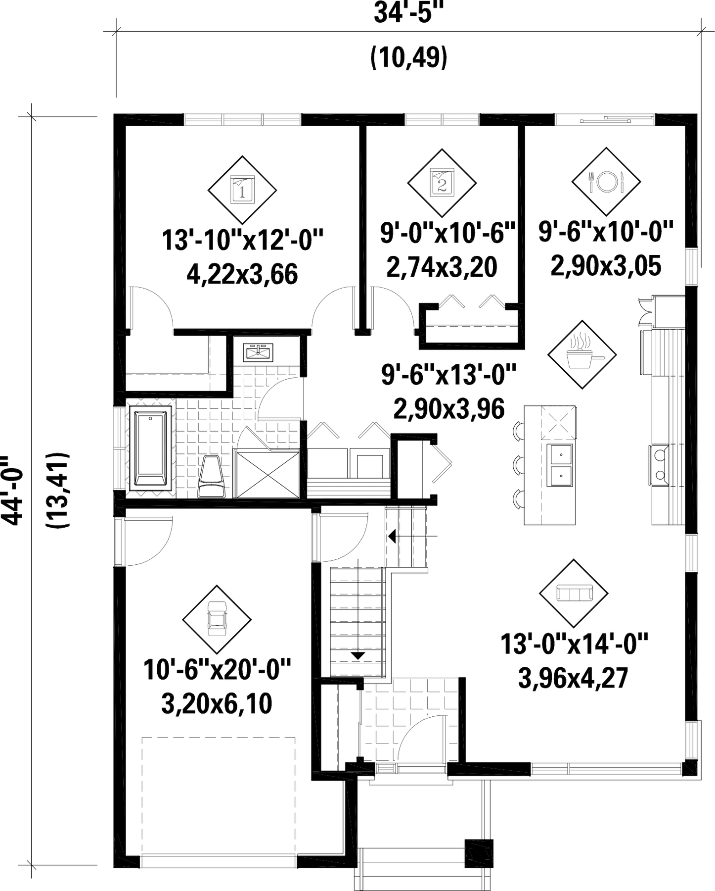 | Façade | 34 pi 5 po |