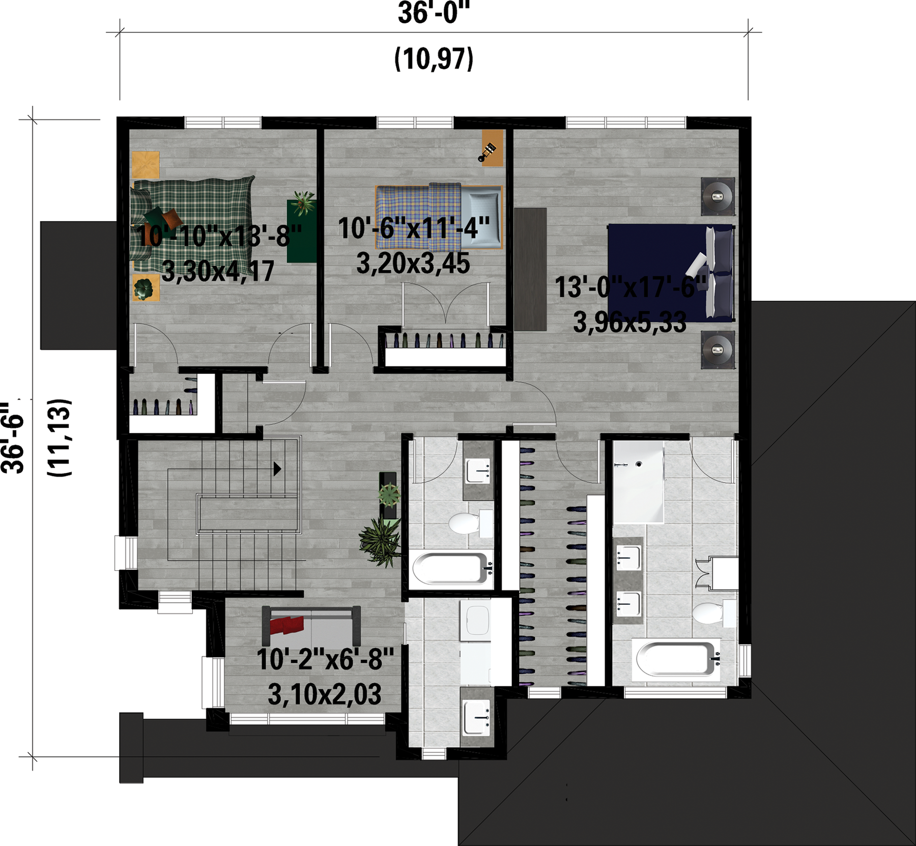 L'étage de 1 206 pieds carrés comprend une salle de bain familiale, une salle de lavage, un coin lecture et trois chambres, dont une chambre des maîtres qui dispose d'une vaste penderie et d'une salle de bains privée.