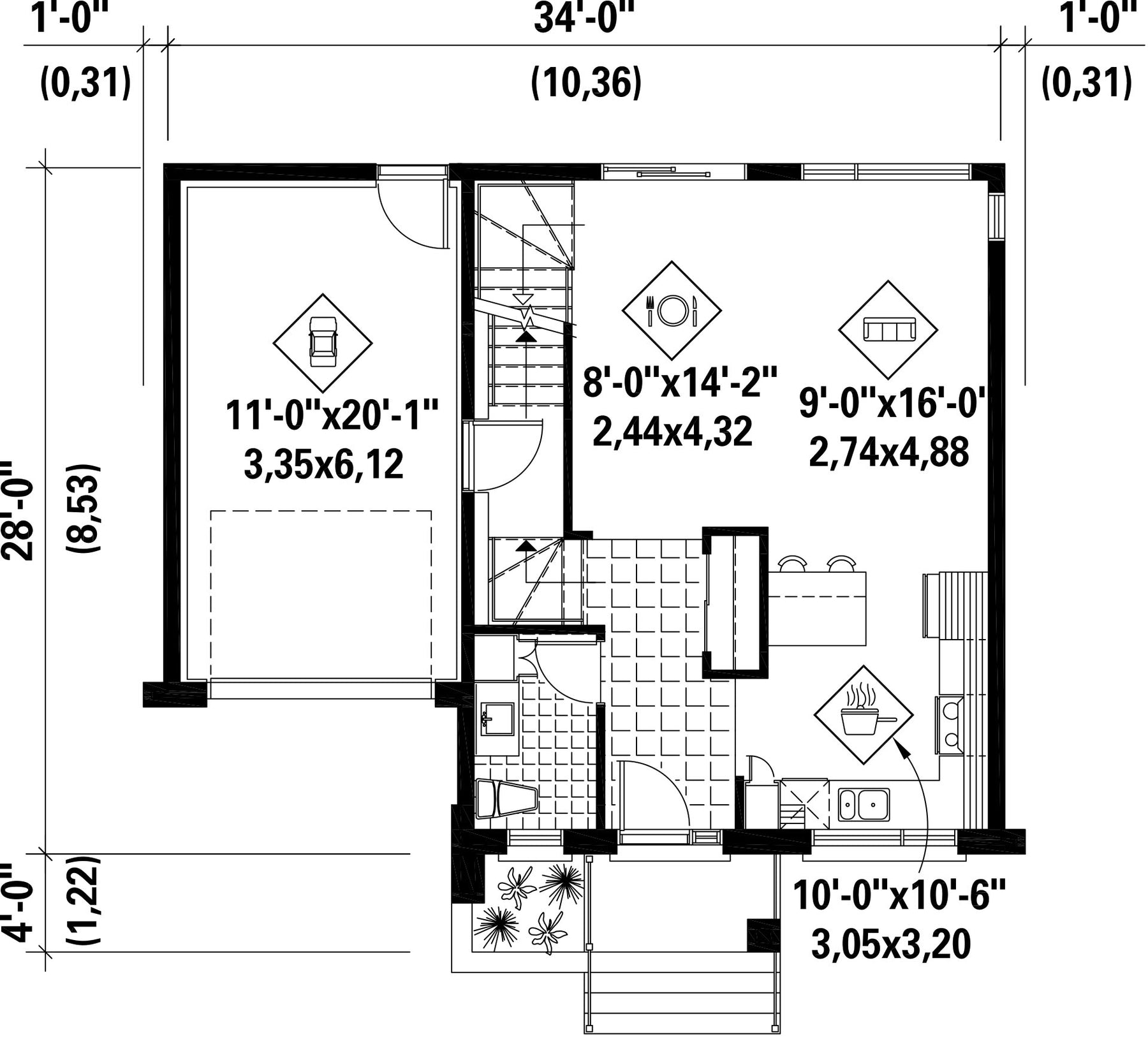 | Mur garage | 8 pi | Mur rez-de-chaussée | 9 pi |