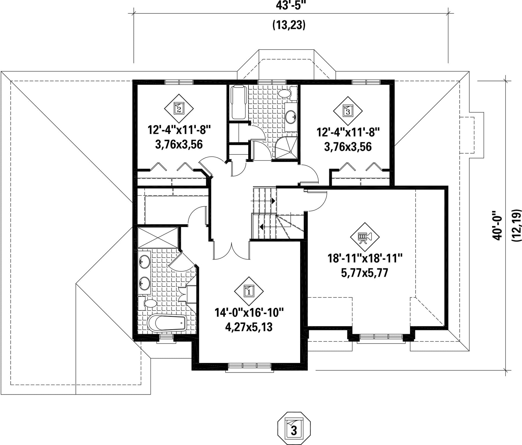 | Second floor wall | 8 ft | Front/back roof slope | 12/12 |