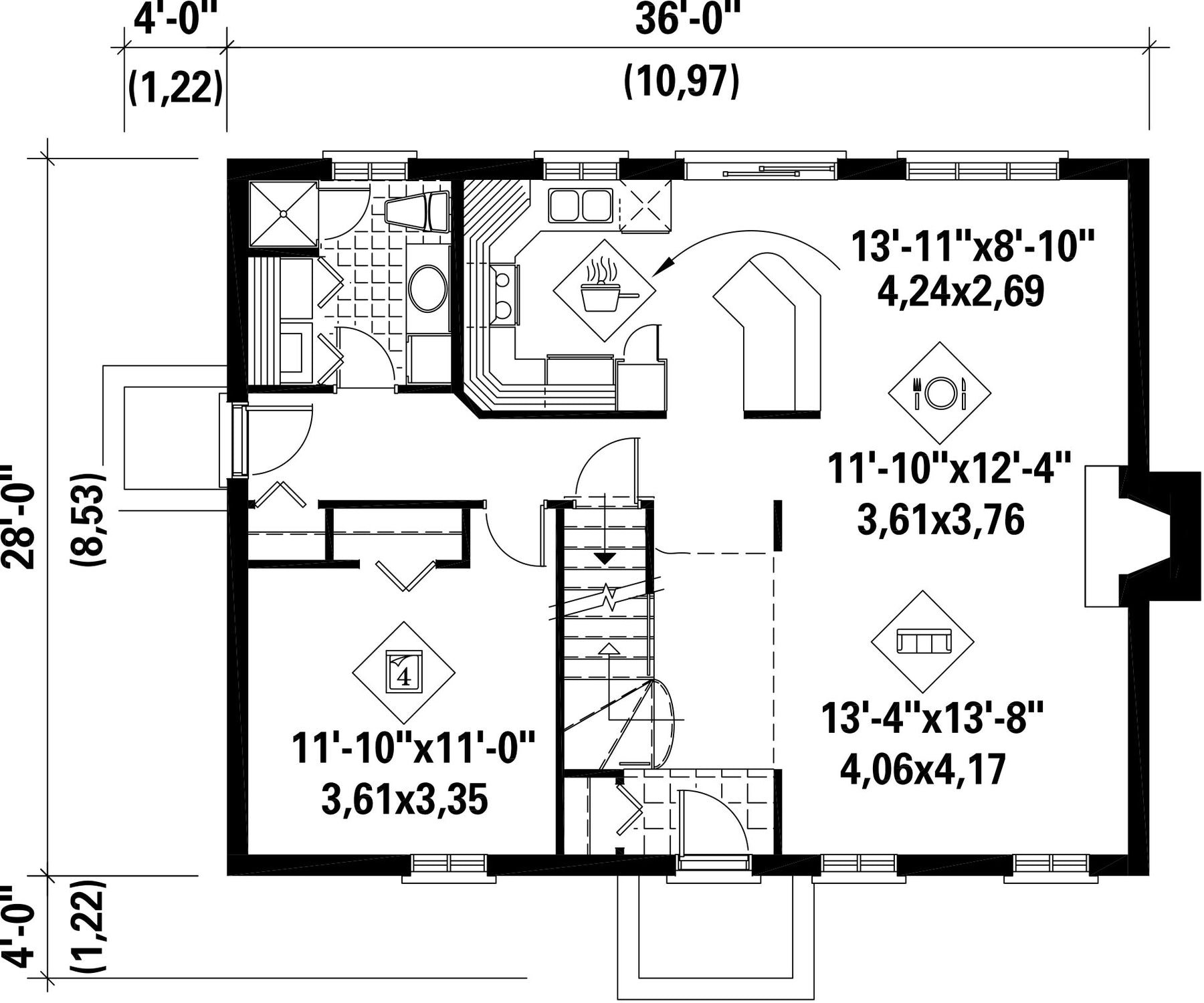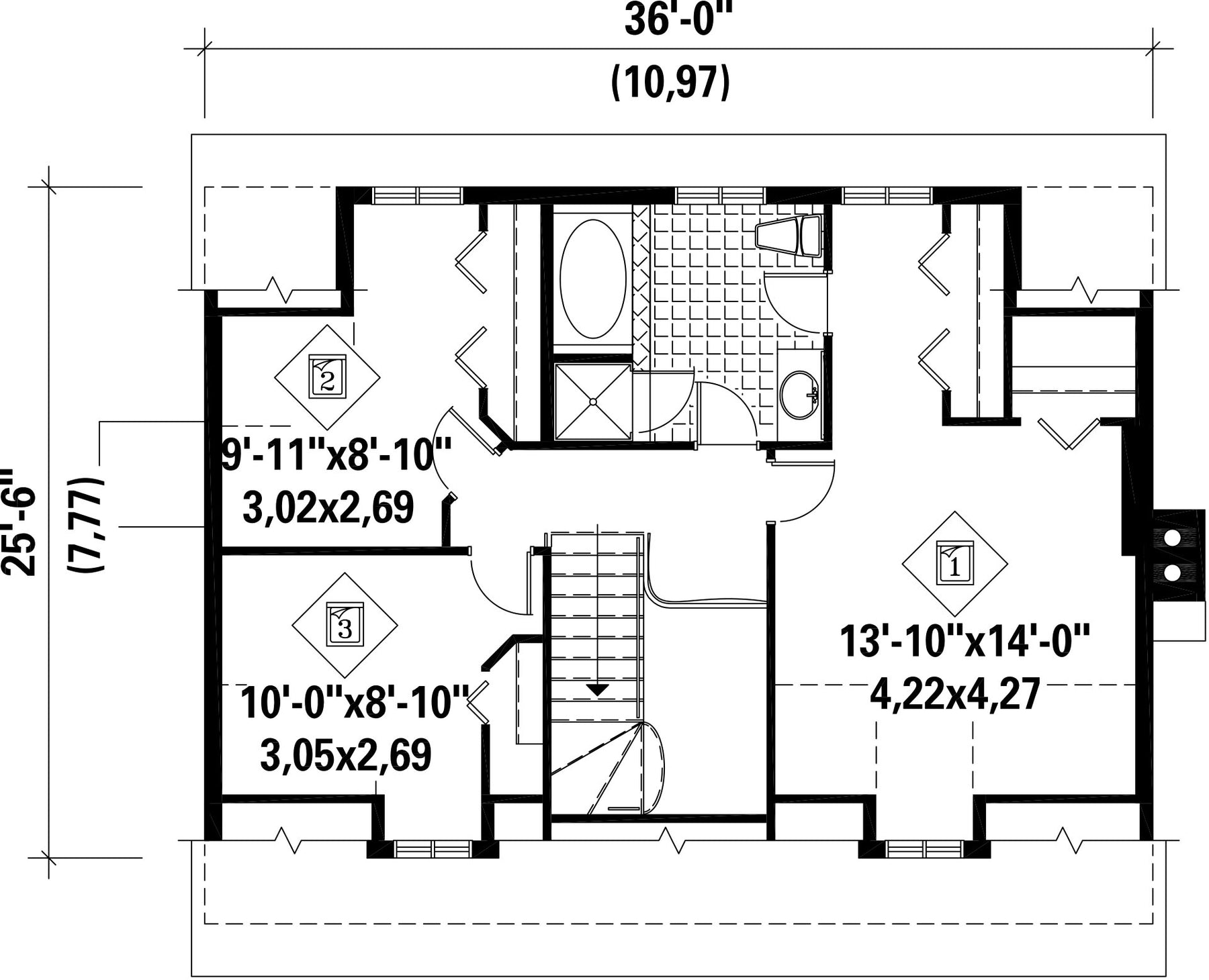 | Front | 36 ft | Total living surface | 1833 ft² |
