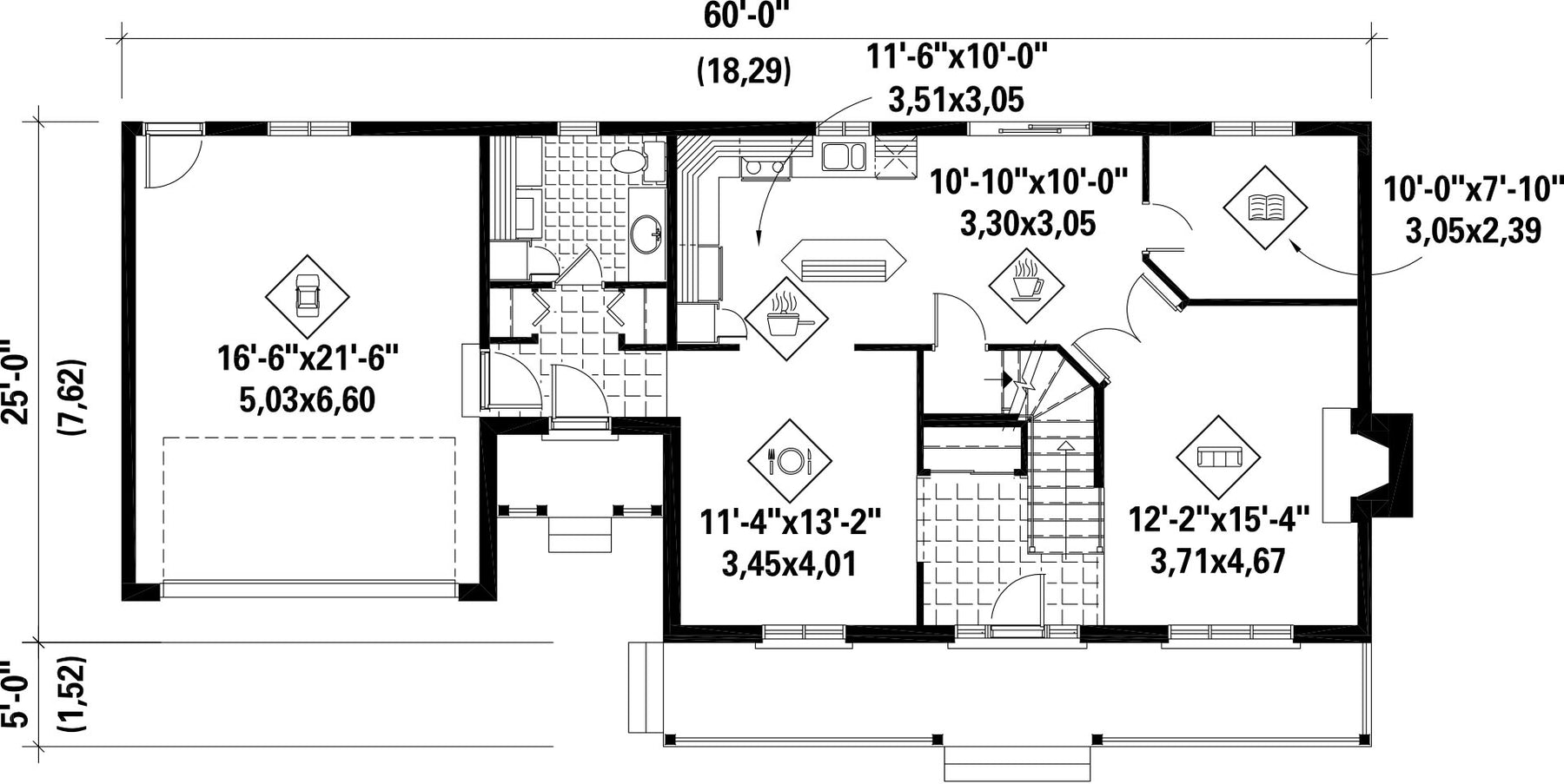 | Front | 60 ft | Total living surface | 1706 ft² |