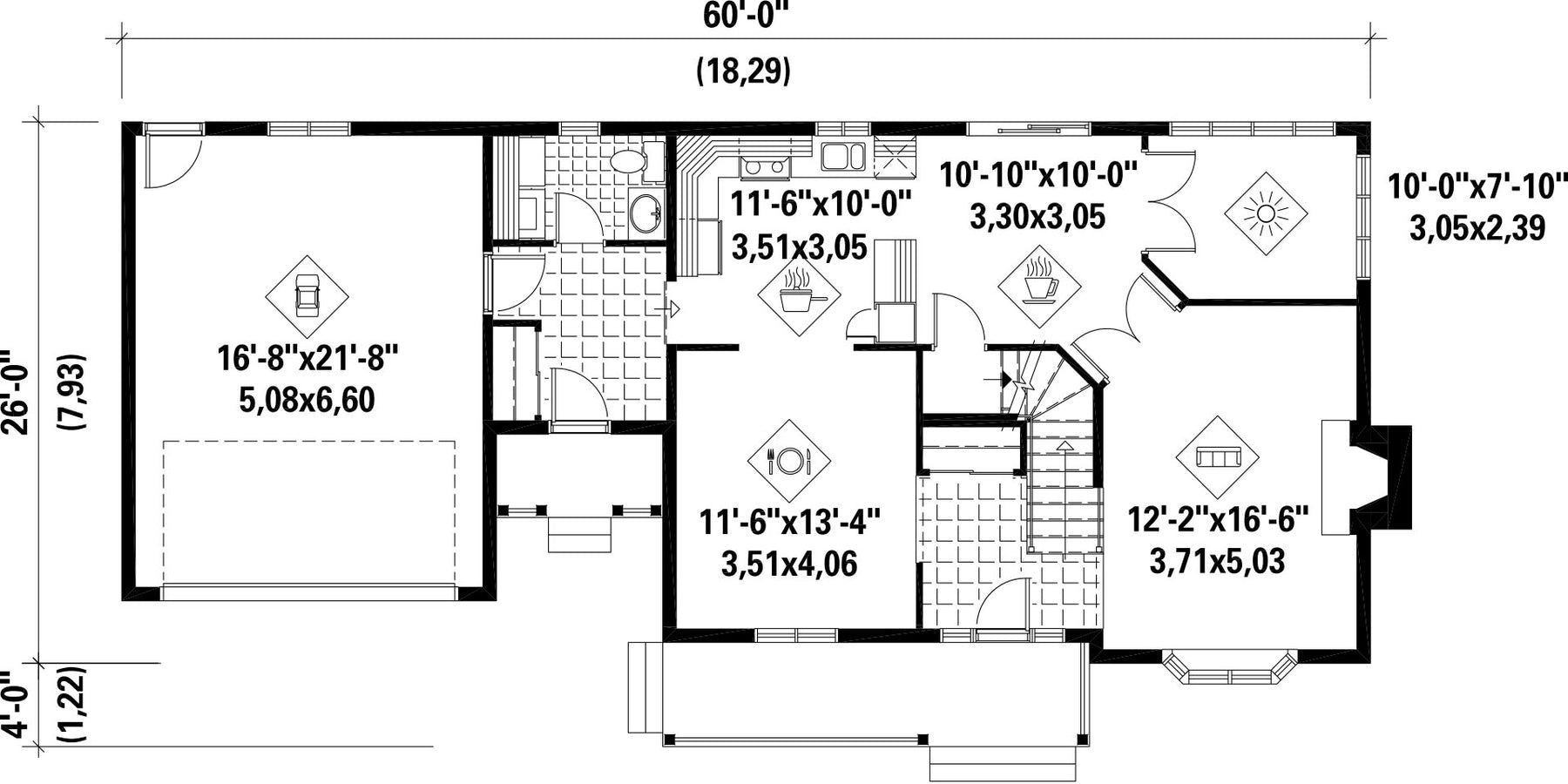 | Front | 60 ft | Total living surface | 1751 ft² |