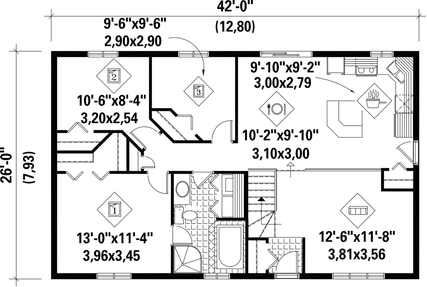| Front | 42 ft | Total living surface | 1092 ft² |