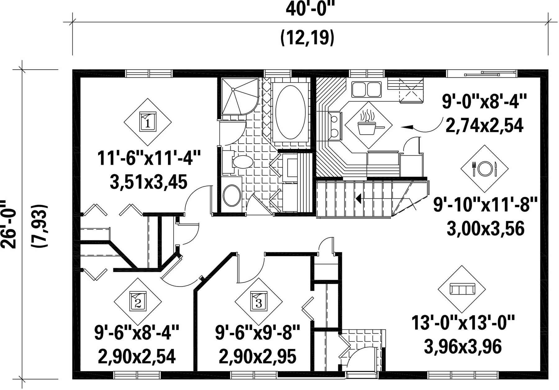 | Front | 40 ft | Total living surface | 1040 ft² |
