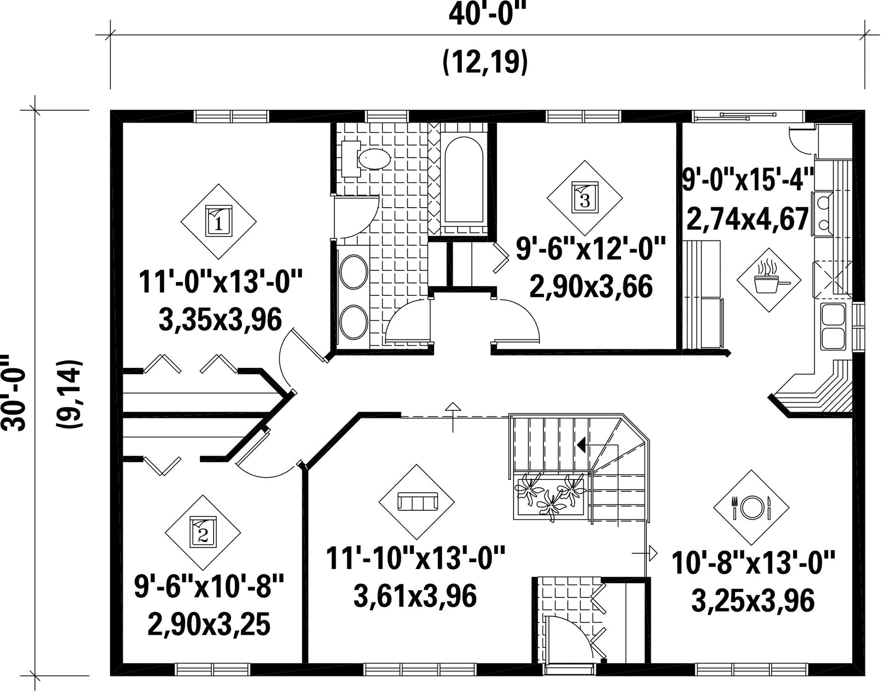 | Front | 40 ft | Total living surface | 1200 ft² |