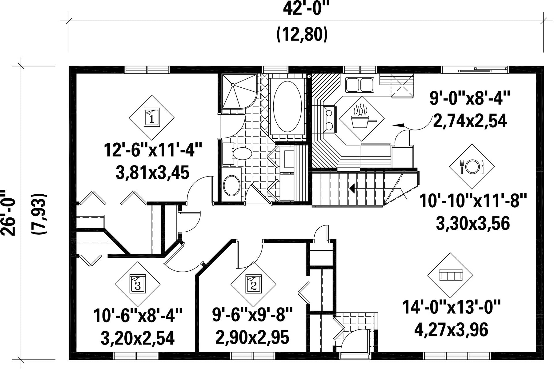 | Front | 42 ft | Total living surface | 1092 ft² |