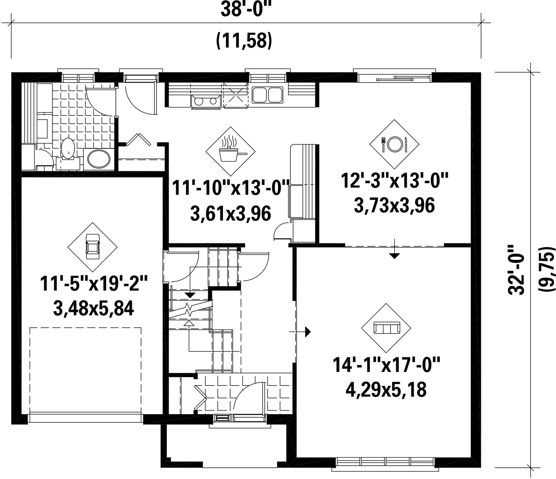 | Front | 38 ft | Total living surface | 1696 ft² |