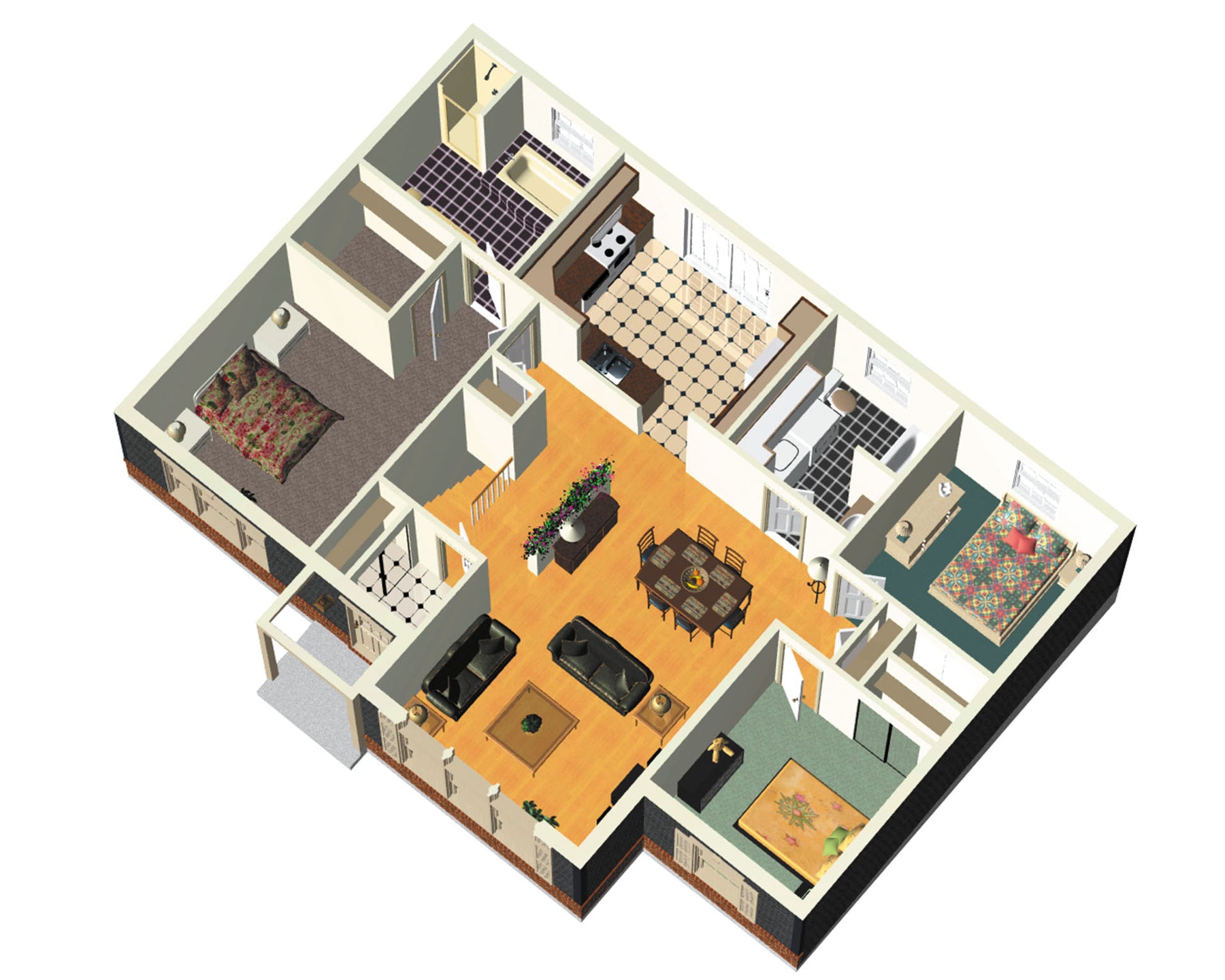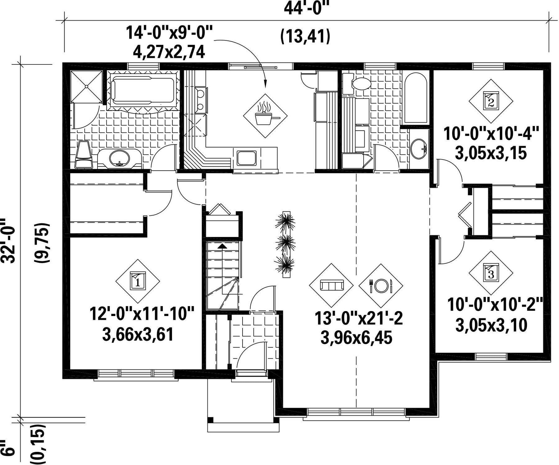 | Front | 44 ft | Total living surface | 1292 ft² |