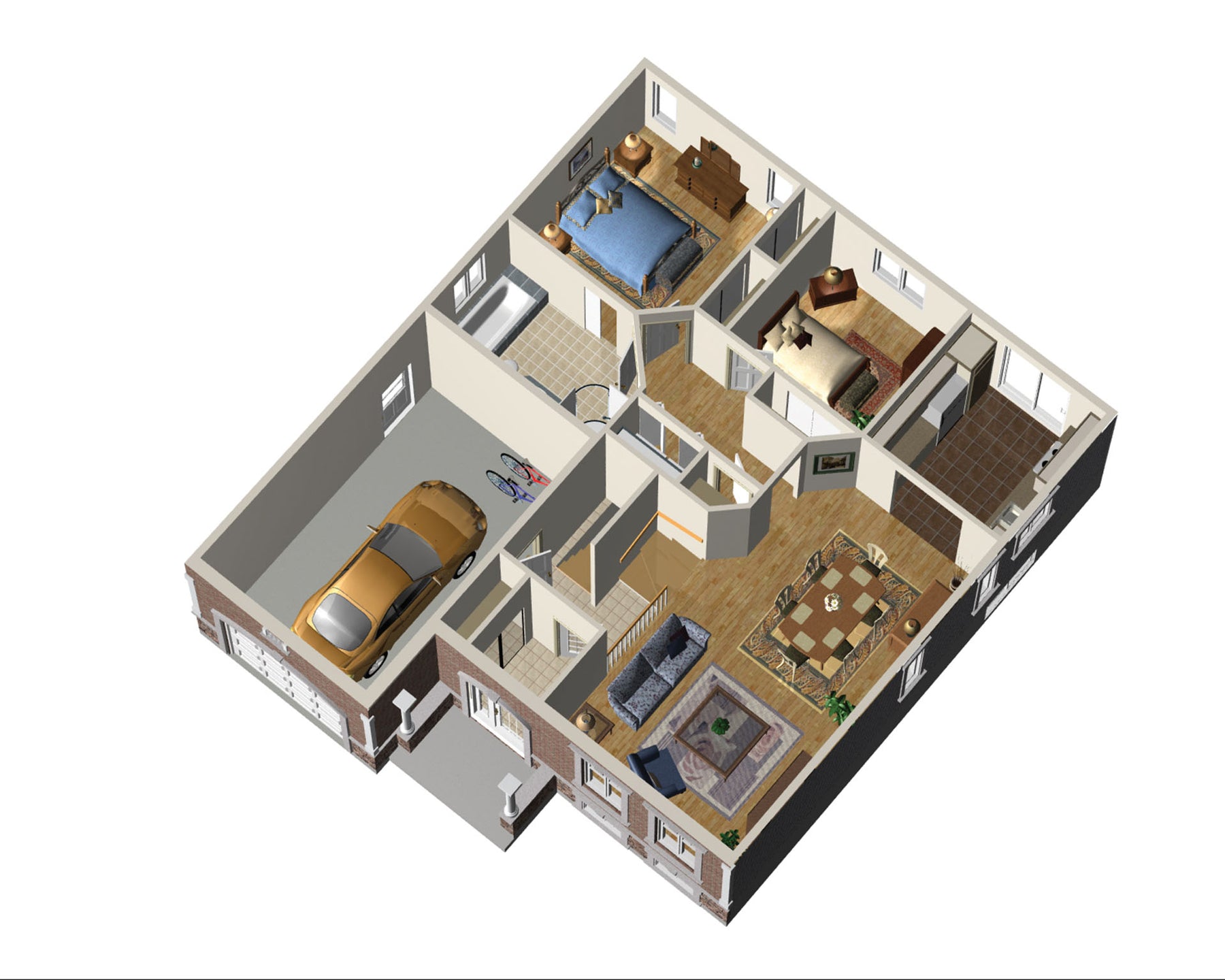 | Master bedroom | Bathtub + Shower + Single sink + Toilet | ||