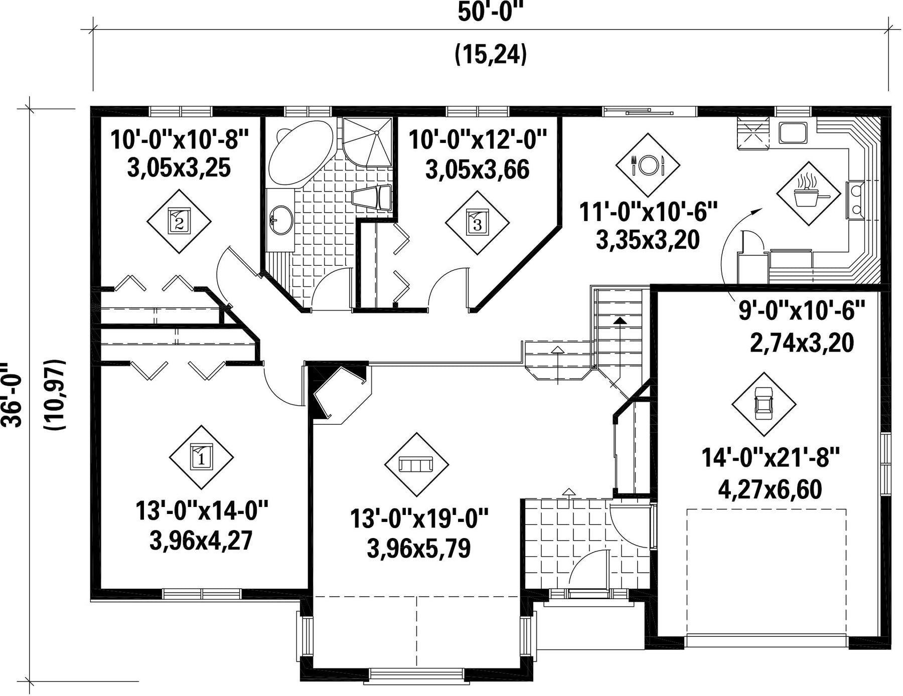 | Front | 50 ft | Total living surface | 1341 ft² |