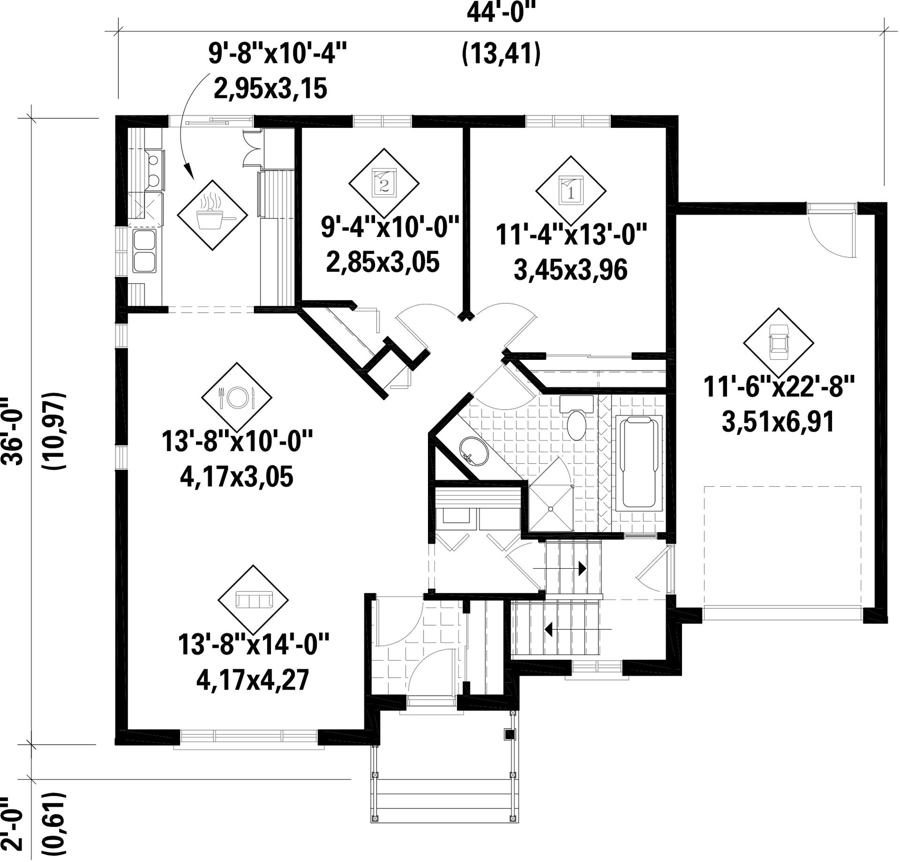 | Front | 44 ft | Total living surface | 1101 ft² |