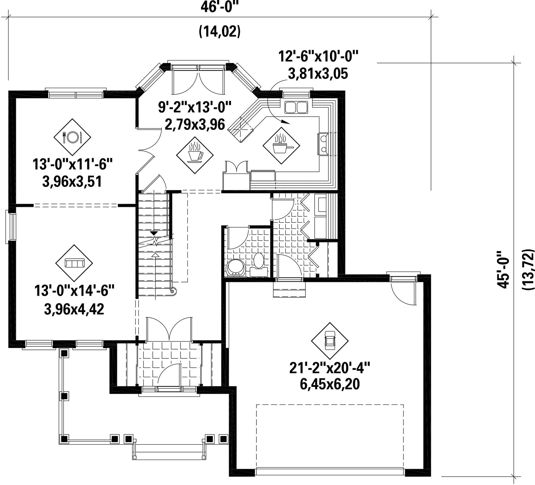 | Front | 46 ft | Total living surface | 2121 ft² |