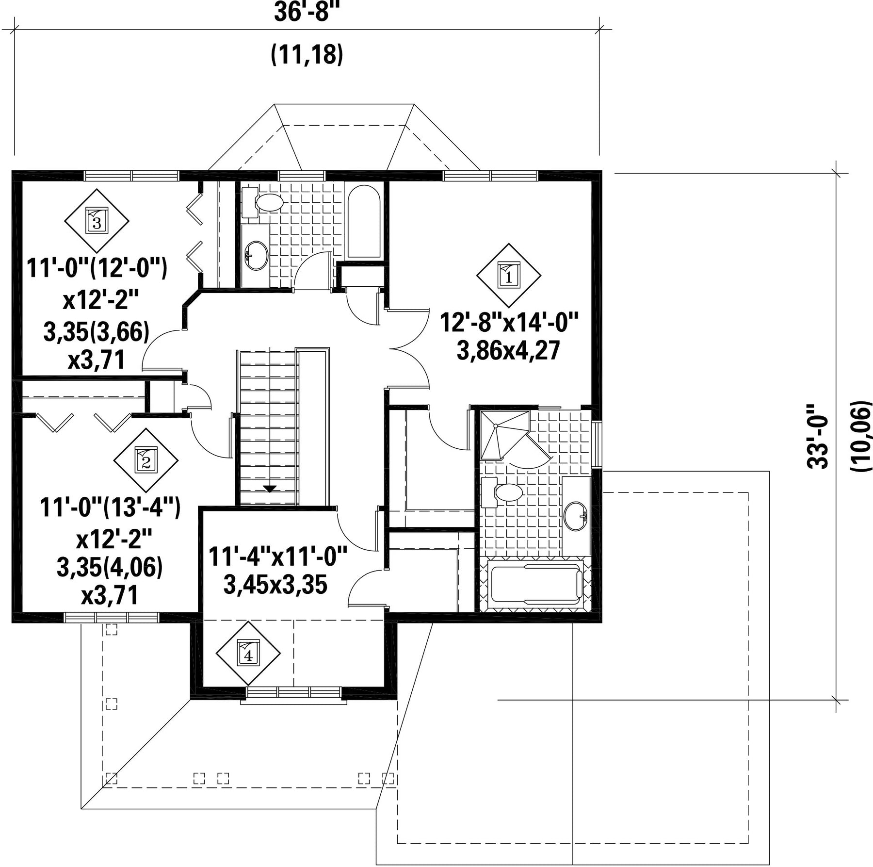 | Second floor wall | 8 ft | Front/back roof slope | 12/12 |