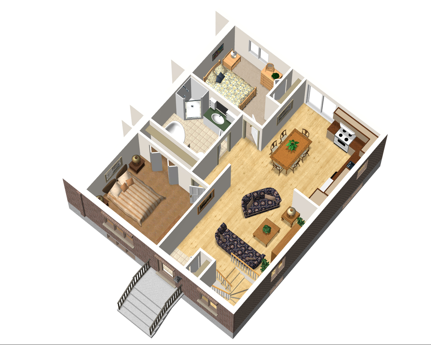 This housing project includes two comfortable bungalows with a brick facade that each provide 832 square feet of living space. Both units are identical.