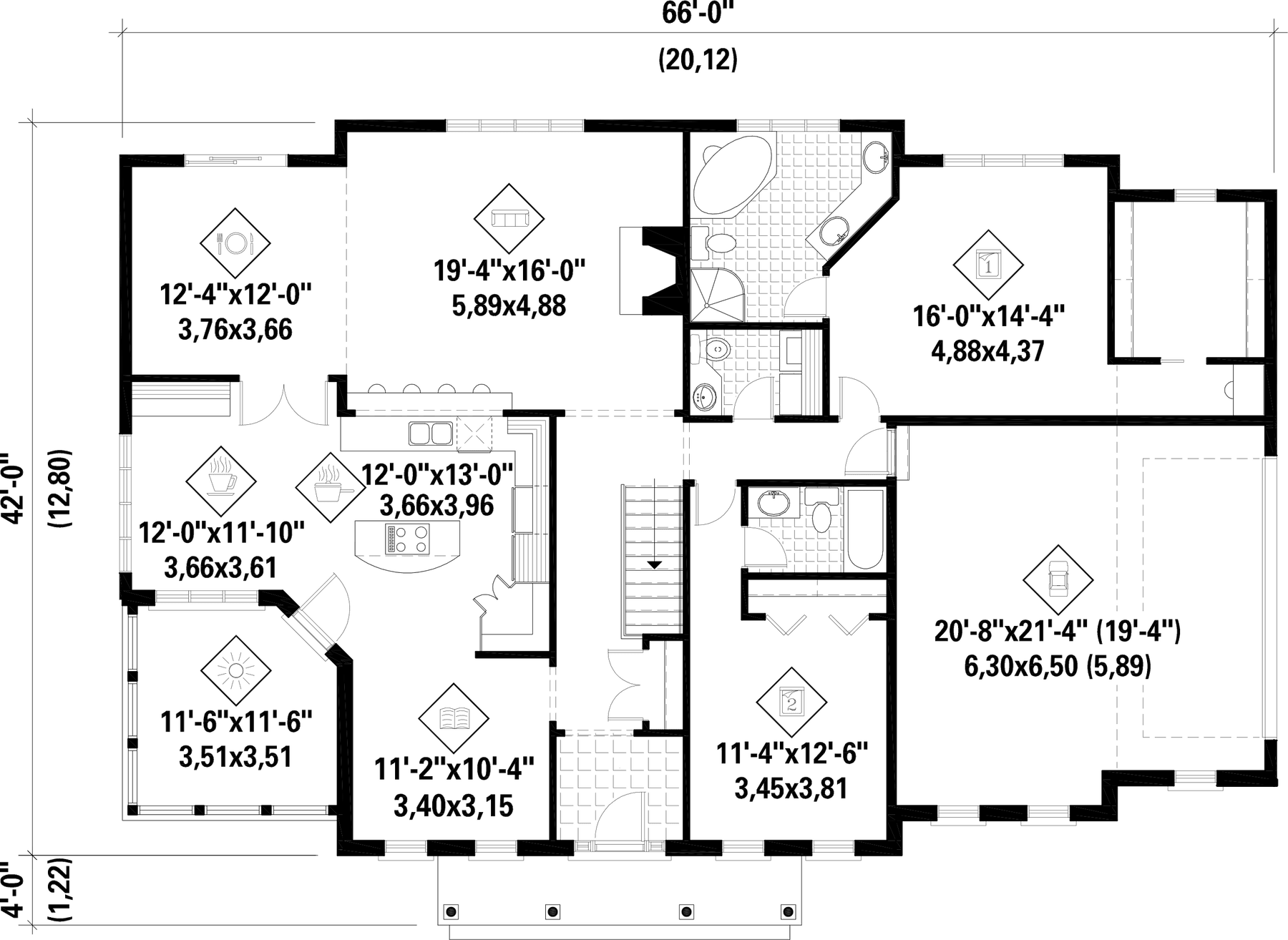| Front | 66 ft | Total living surface | 1983 ft² |