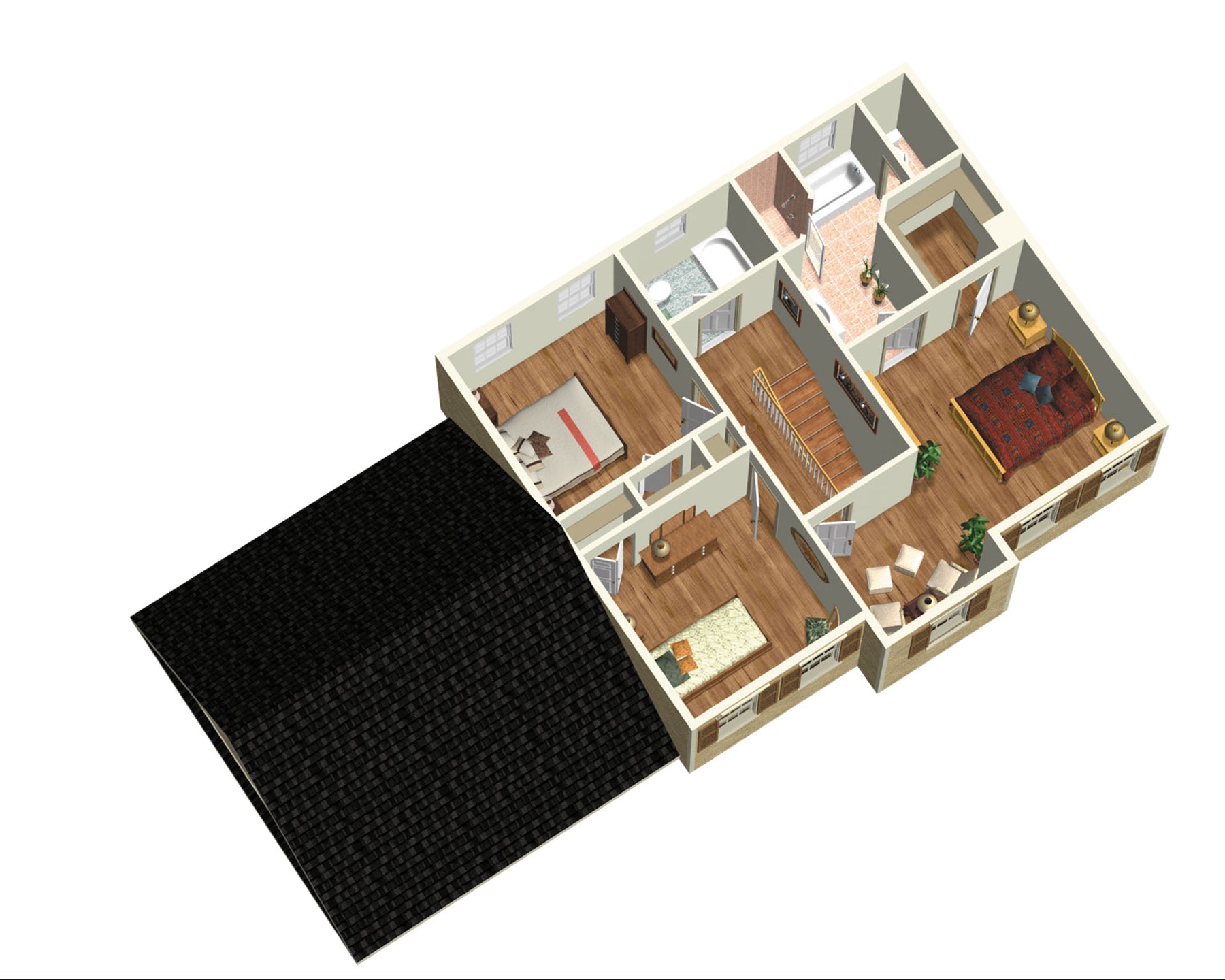 | Master bedroom | Bathtub + Shower + Single sink + Wardrobe + Toilet |