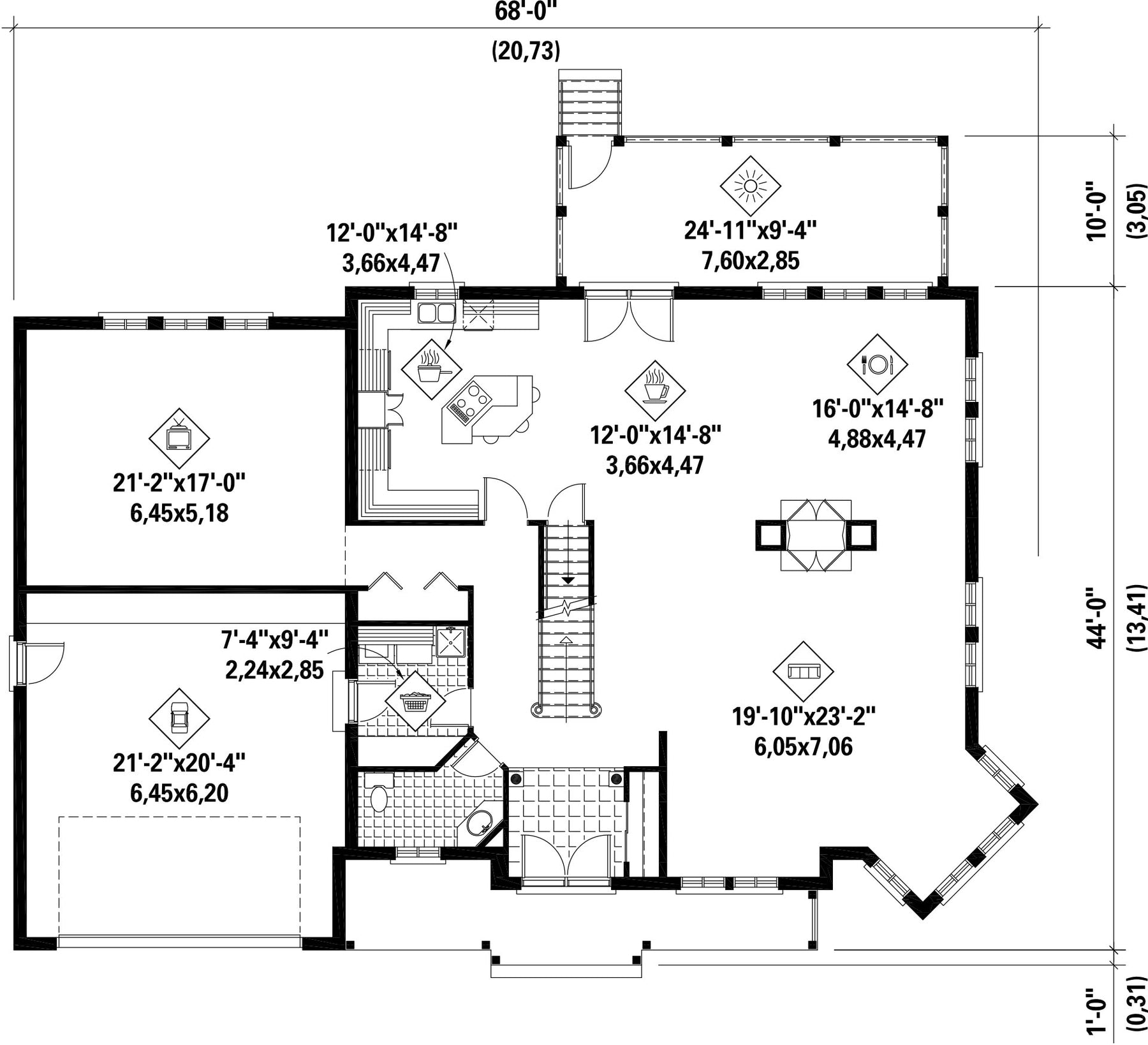 | Front | 68 ft | Total living surface | 3751 ft² |