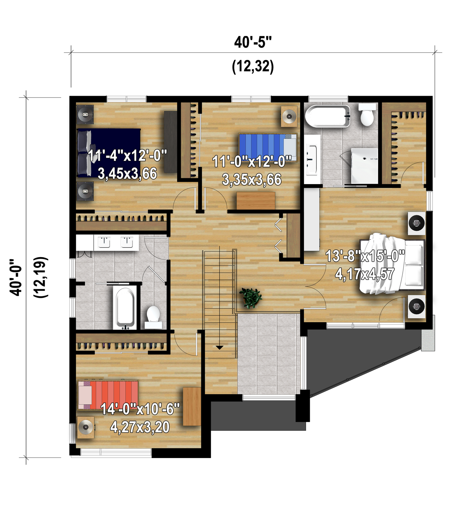 | Front | 40 ft 5 in | Total living surface | 2317 ft² |