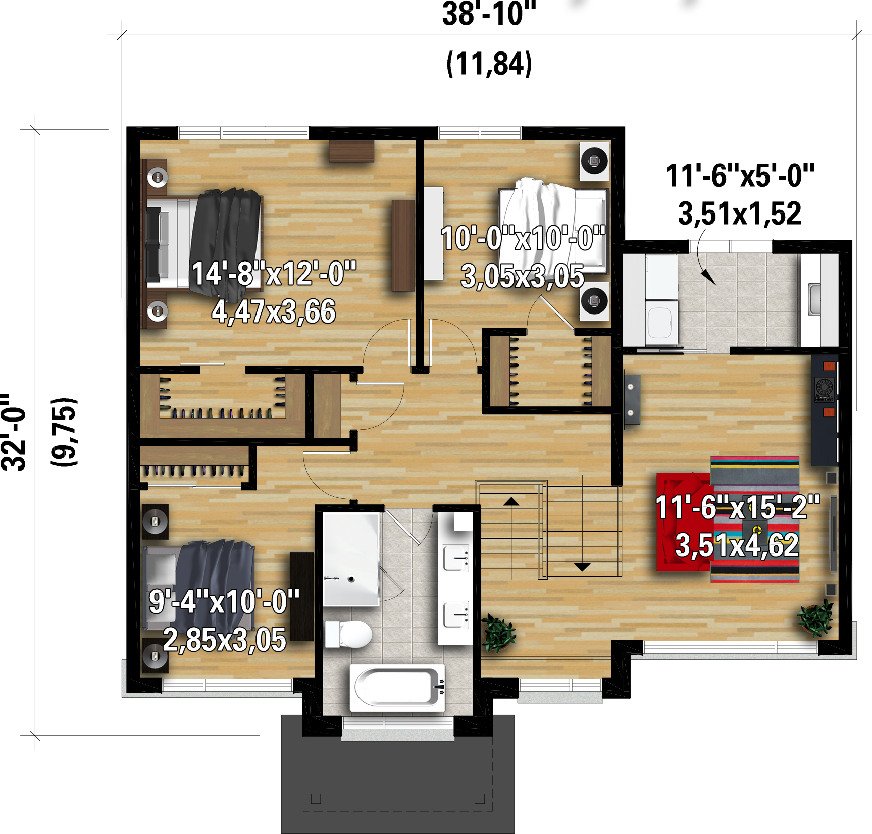 | Front | 38 ft 10 in |