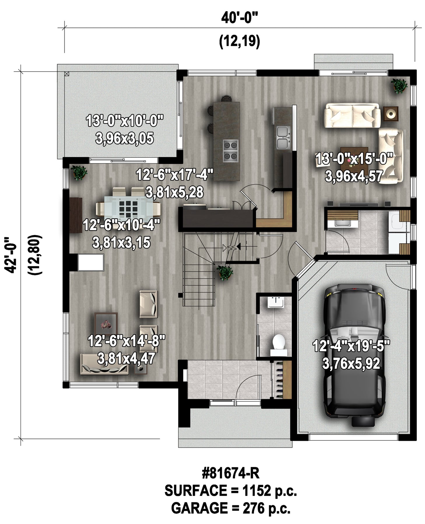 | Front | 40 ft | Total living surface | 1972 ft² |
